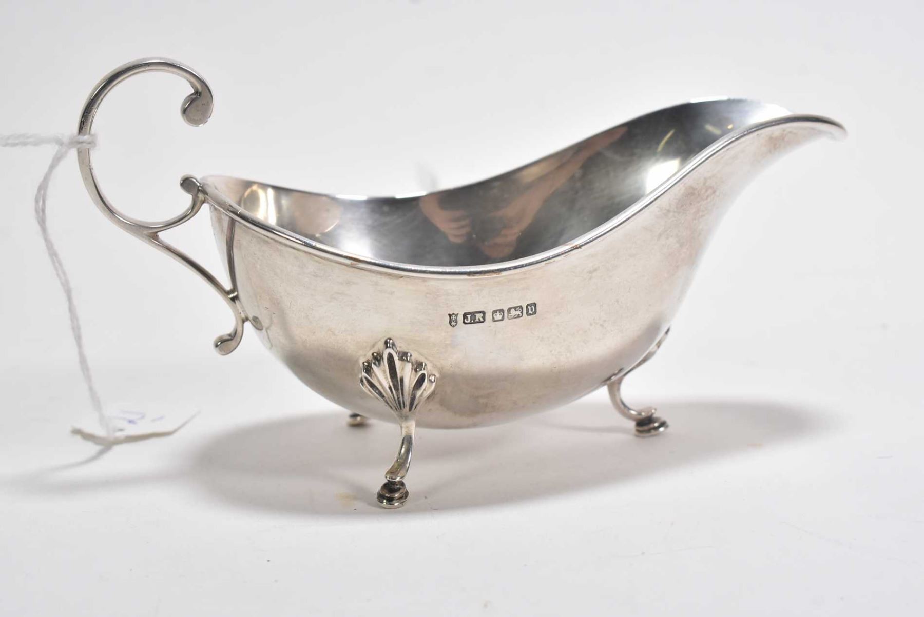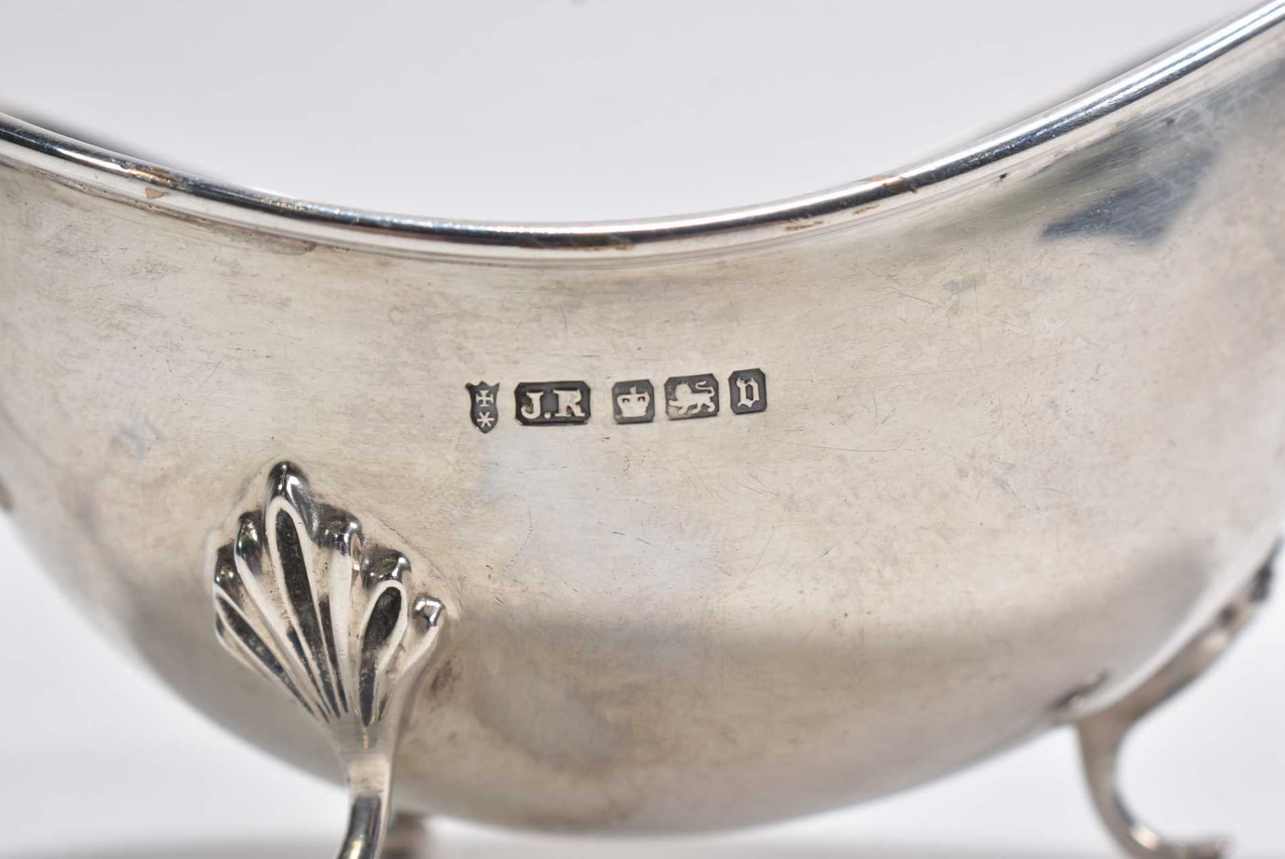 Sterling silver three footed sauce boat marked 1/4 pint with British hallmarks made by Joseph Rodgers & Sons, Sheffield 1913