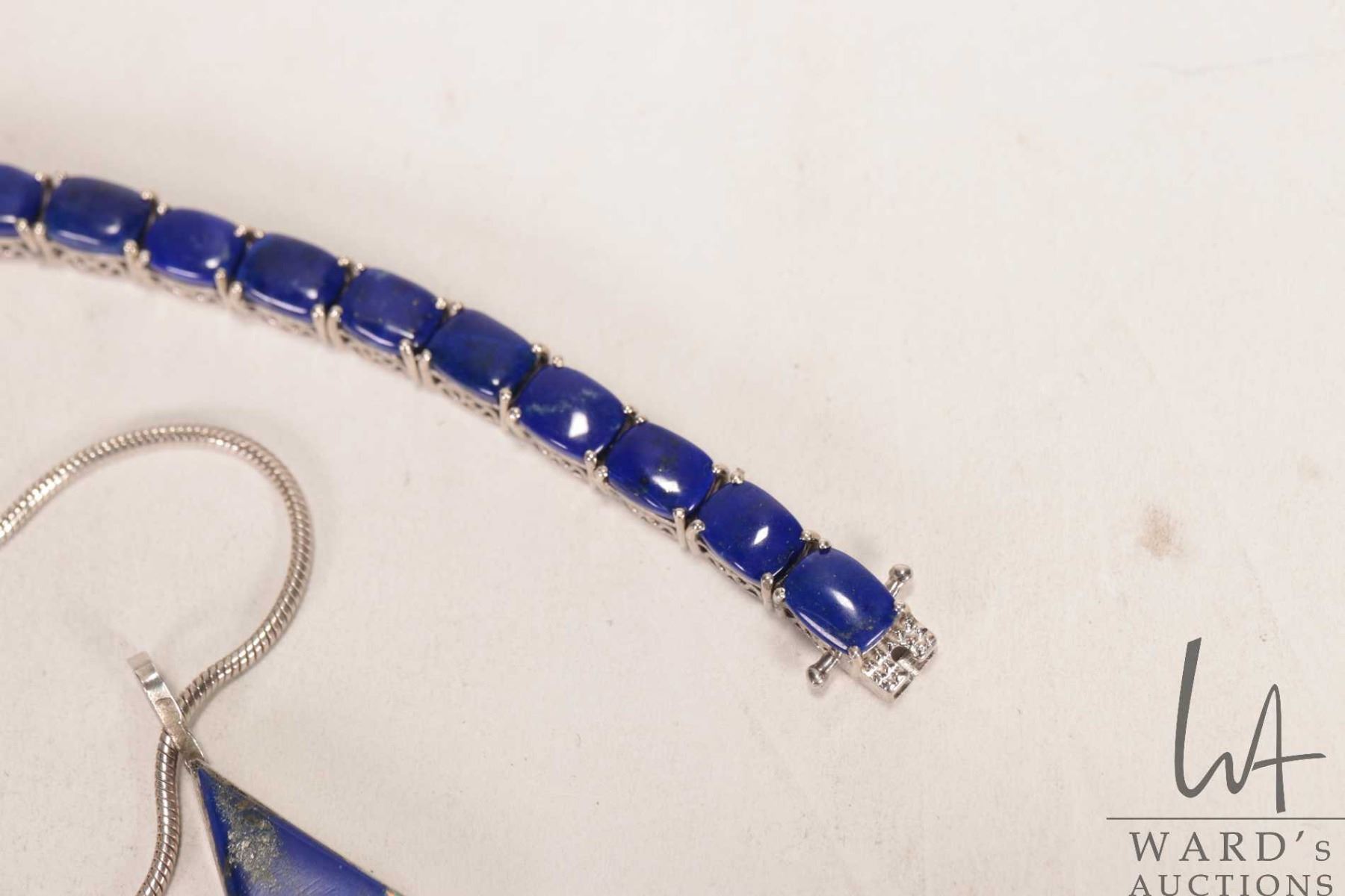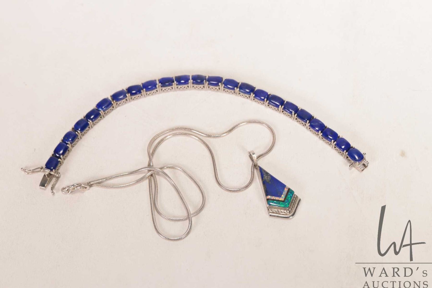 Sterlling silver and blue lapis stone 8" bracelet and a sterling silver lapis stone pendant on 18" n
