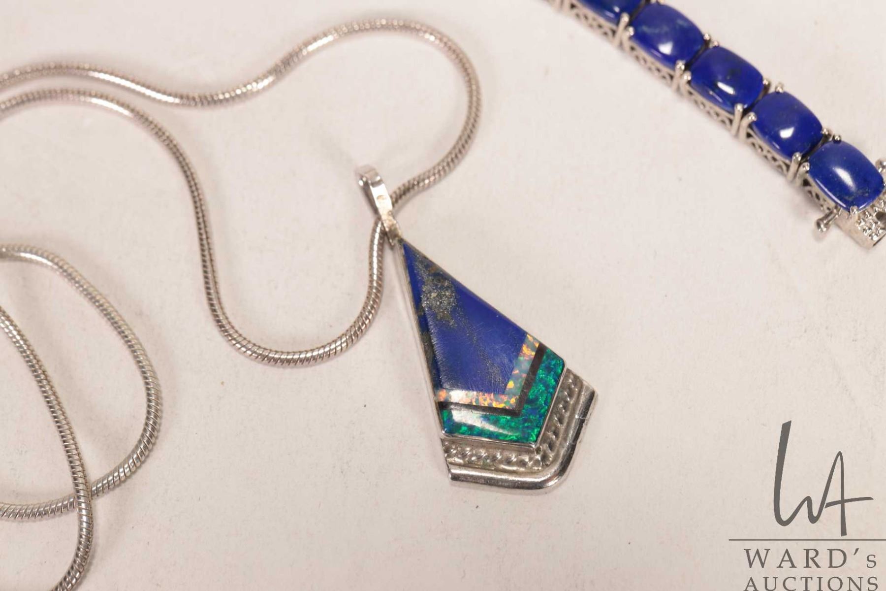 Sterlling silver and blue lapis stone 8" bracelet and a sterling silver lapis stone pendant on 18" neck chain