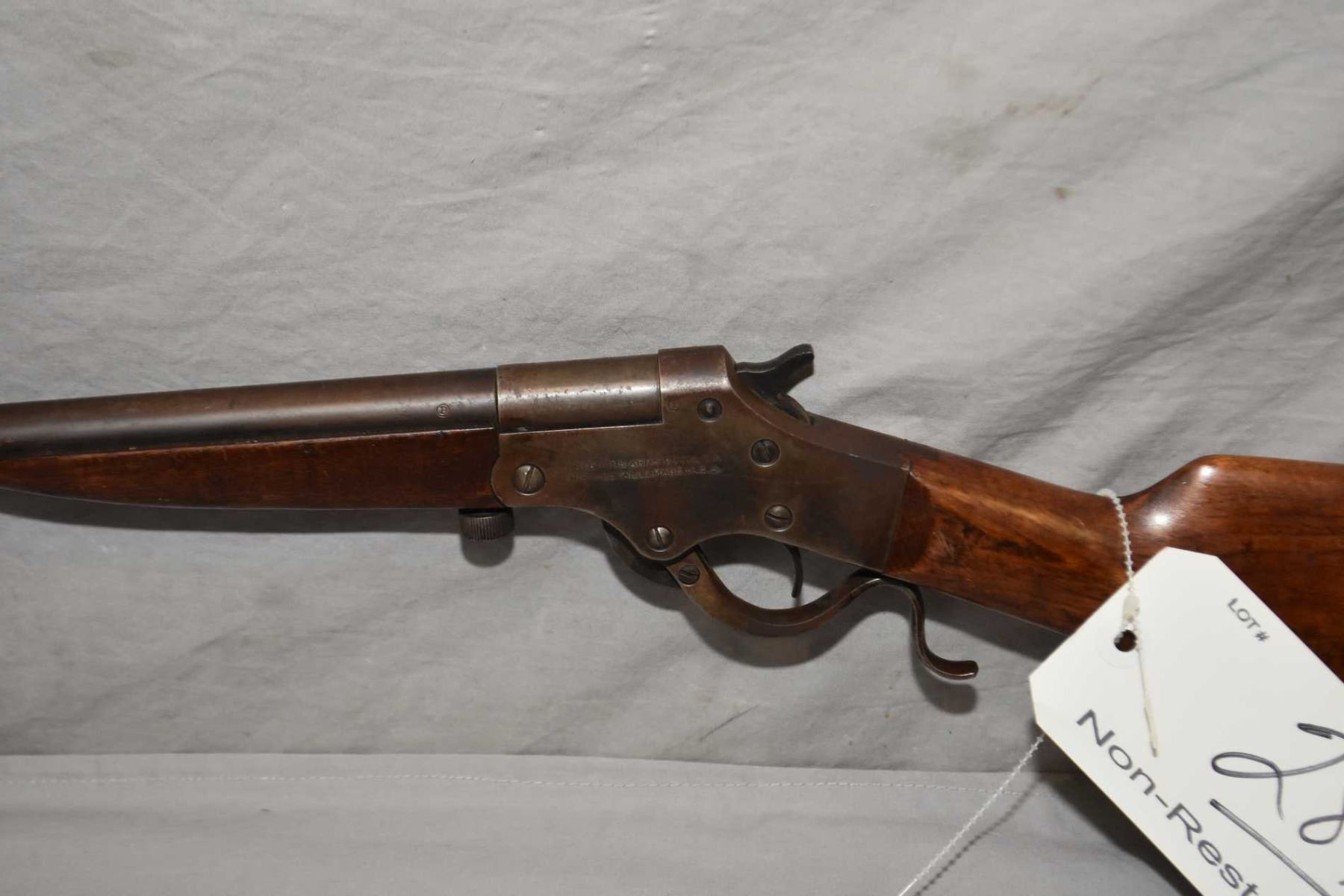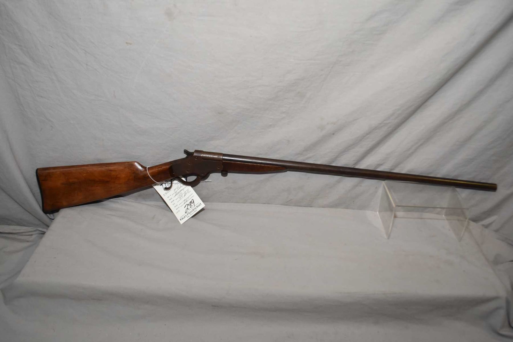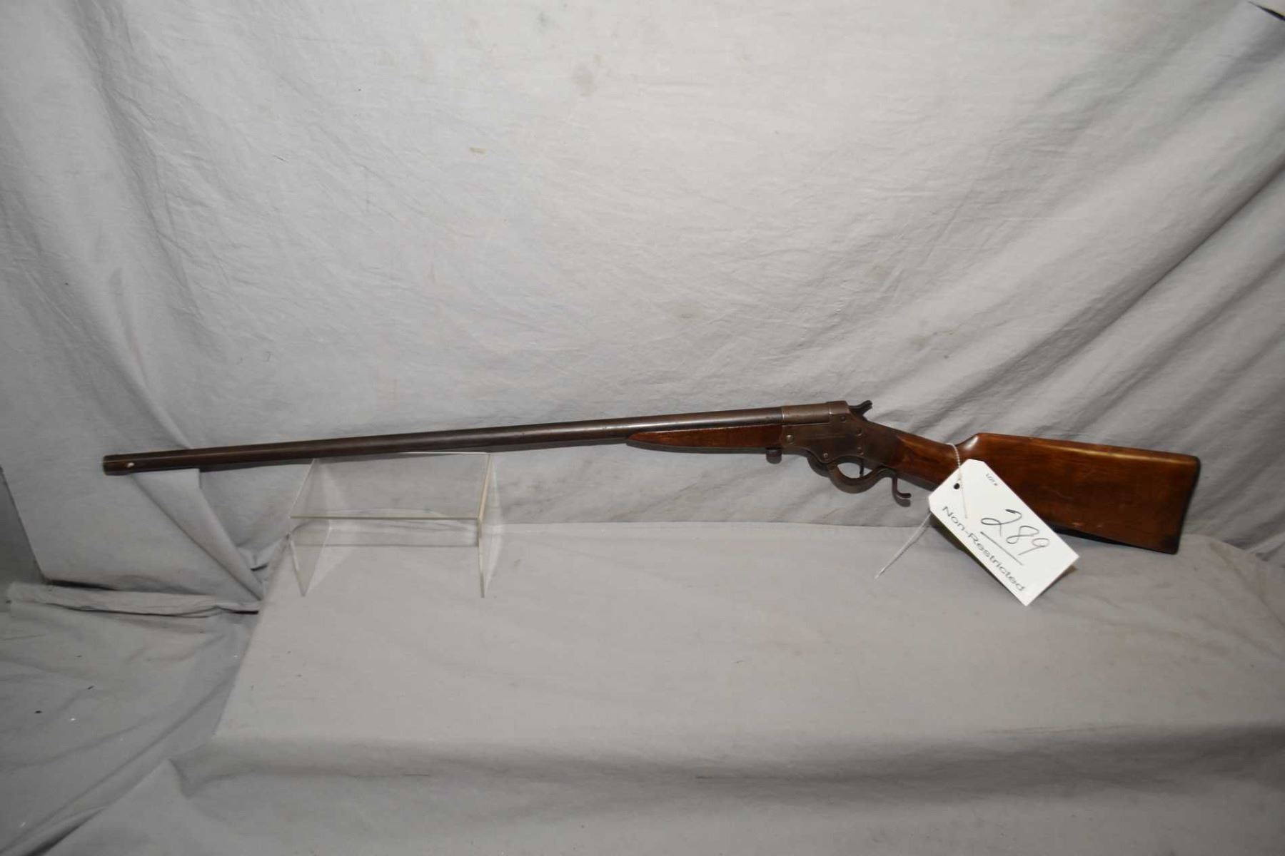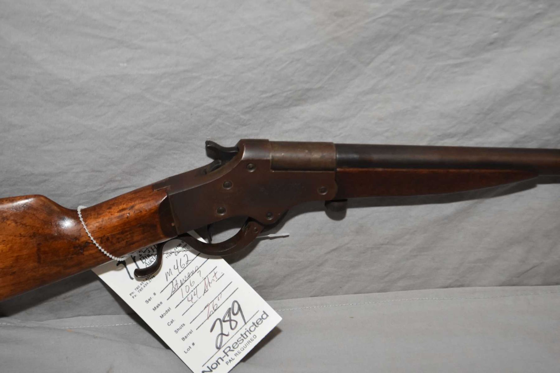 Stevens Model 106 ? .44 Shot Cal Single Shot Break Action Shotgun w/ 26" bbl [ fading blue finish turning brown, various marks and scratches, wood with cracks behind receiver, good forend wood ] Ser # M462