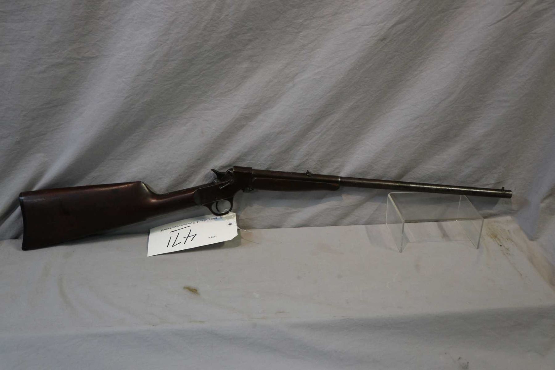 Stevens Model Crack - Shot .32 - Short Rimfire Cal Single Shot Falling Block Rifle w/ 20" part octagon bbl [ patchy fading blue finish turning brown in some areas, barrel sights, butt stock cracked right side behind receiver, and at toe, small chips missing out of forend in front of receiver, various marks and scratches to wood and metal ] Ser # V295