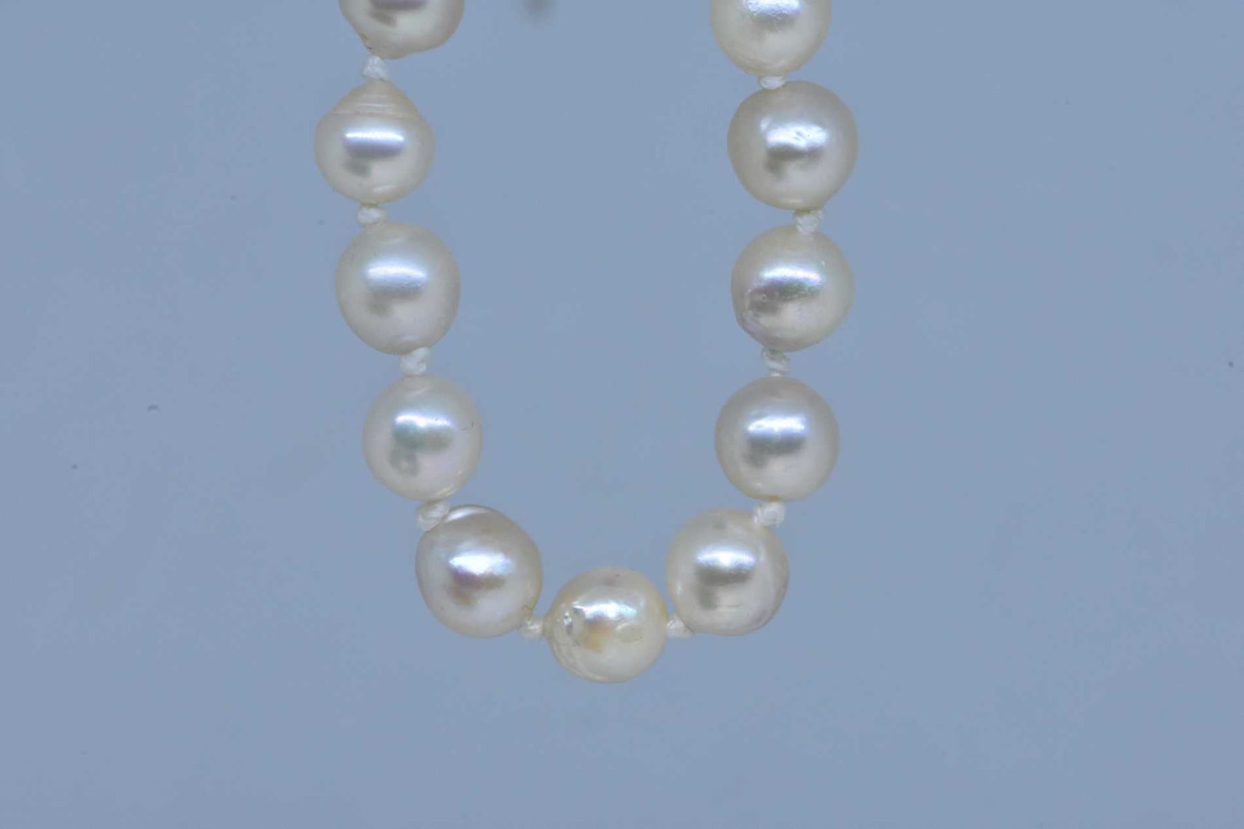 Strand of genuine free formed pearls with a 10kt white gold clasp, 24" in length plus a pair of genuine cultured pearl earrings with 14kt yellow gold posts and butterfly backs