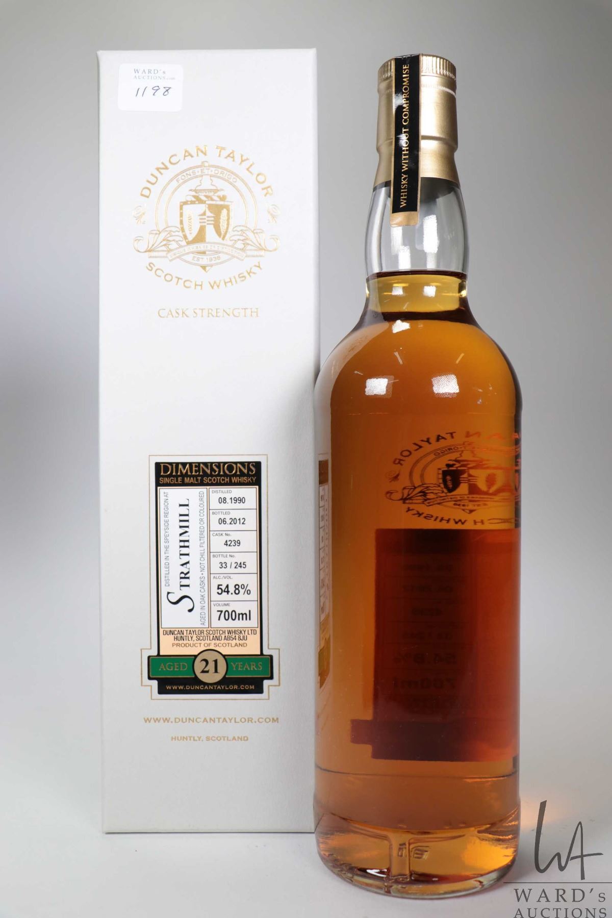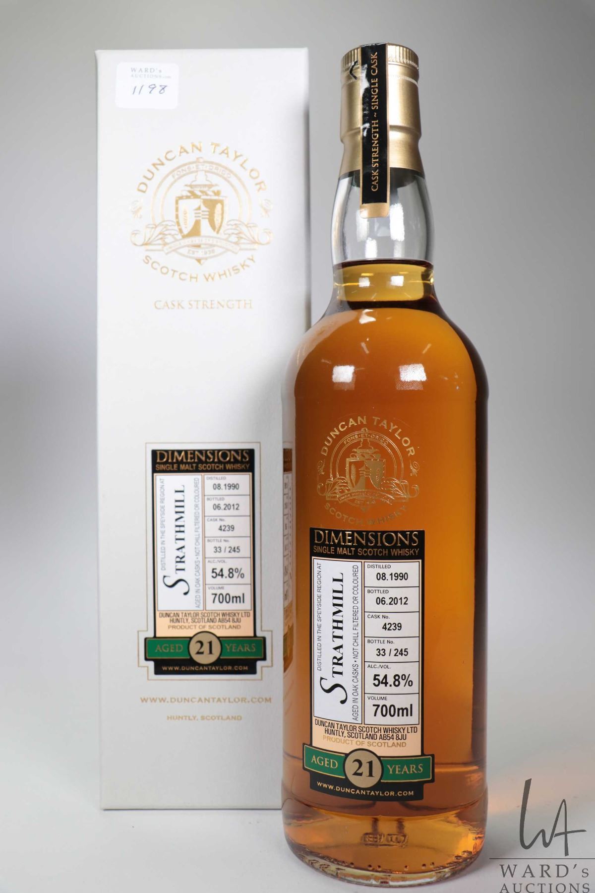 Strathmore/ Duncan Taylor Dimensions/ 21 Year Old/ Scotch Whisky/ Bottled 2012/ Cask No. 4239/ Bottle 33 of 245/ 700ml/ 54.8% ABV Note: Shipping only available in Canada. Shippers insurance is unavailable. Foreign buyers must arrange their own brokers