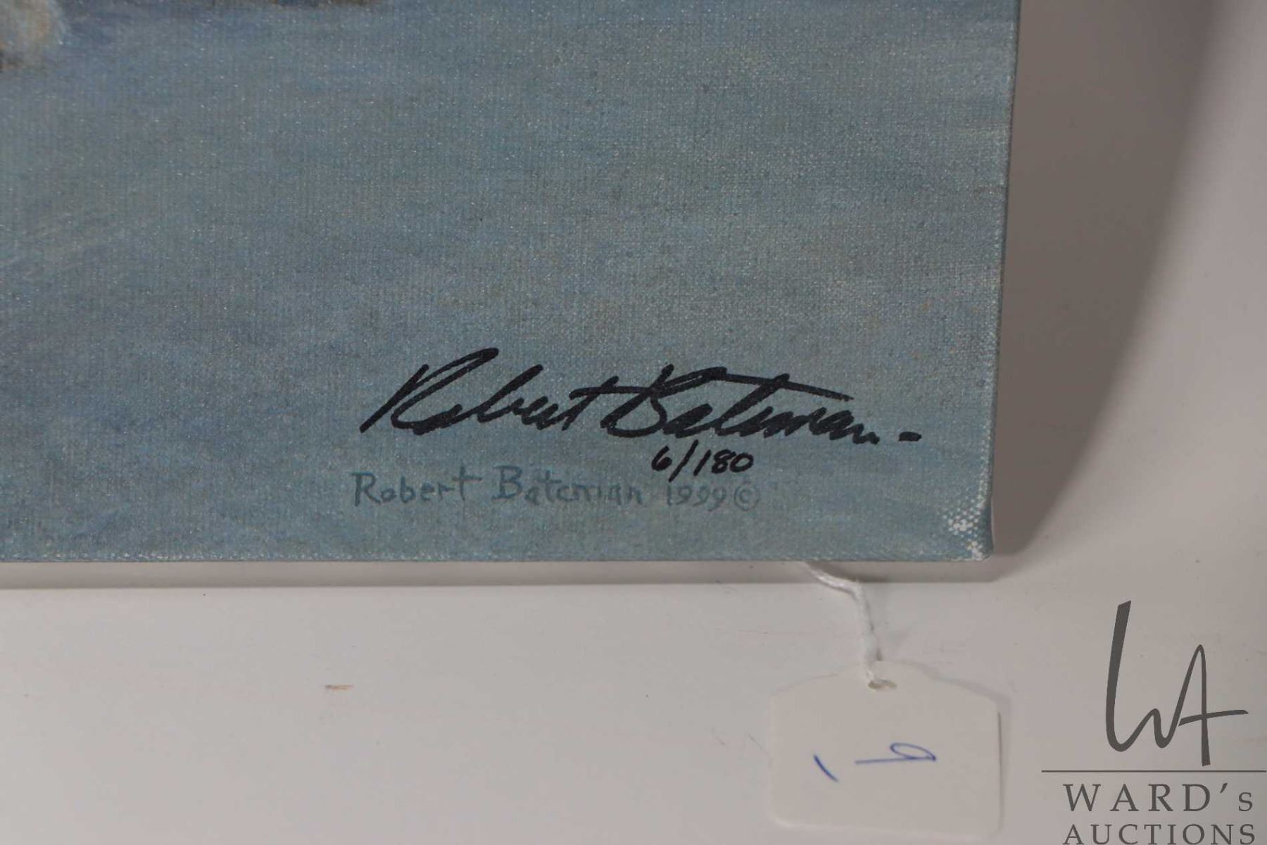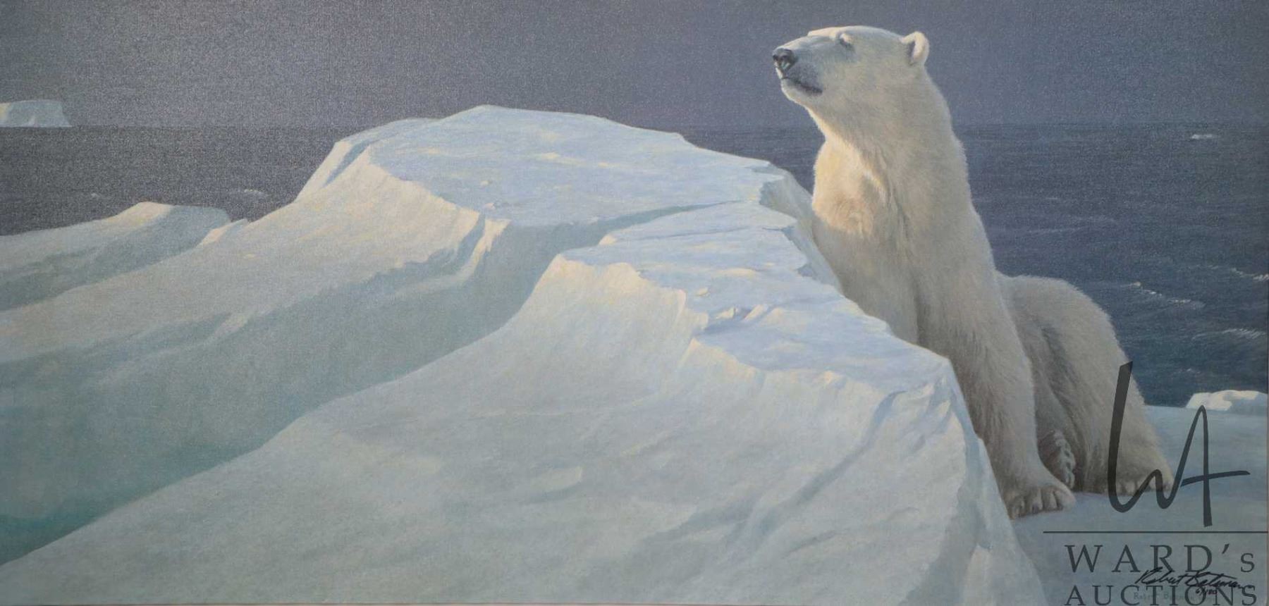 Stretch giclee canvas print "Long Light Polar Bears" ink signed by artist Robert Bateman, 6/180, 18" X 37"