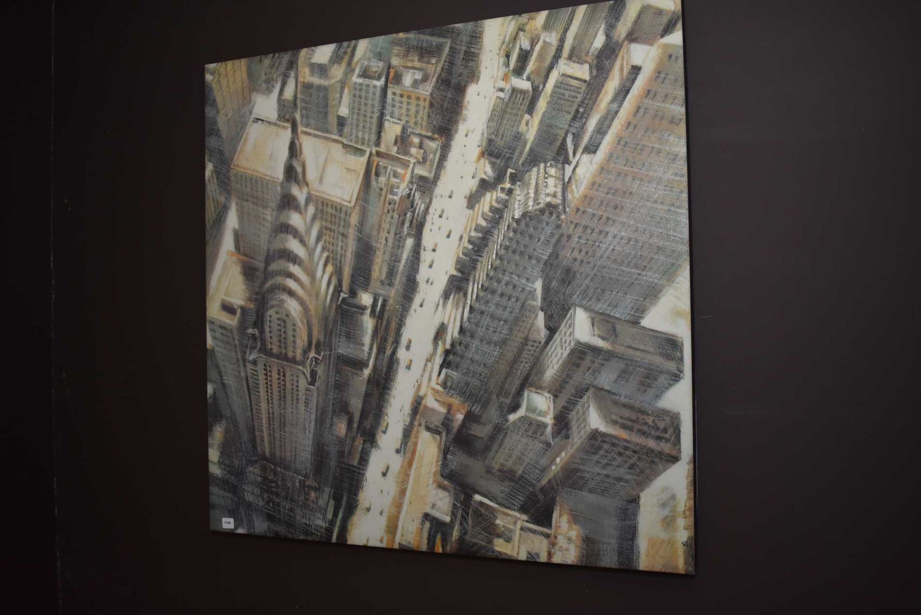 Stretcher framed decor print of a cityscape featuring the Chrysler building NOTE: Shipping not available. Local bidders only.