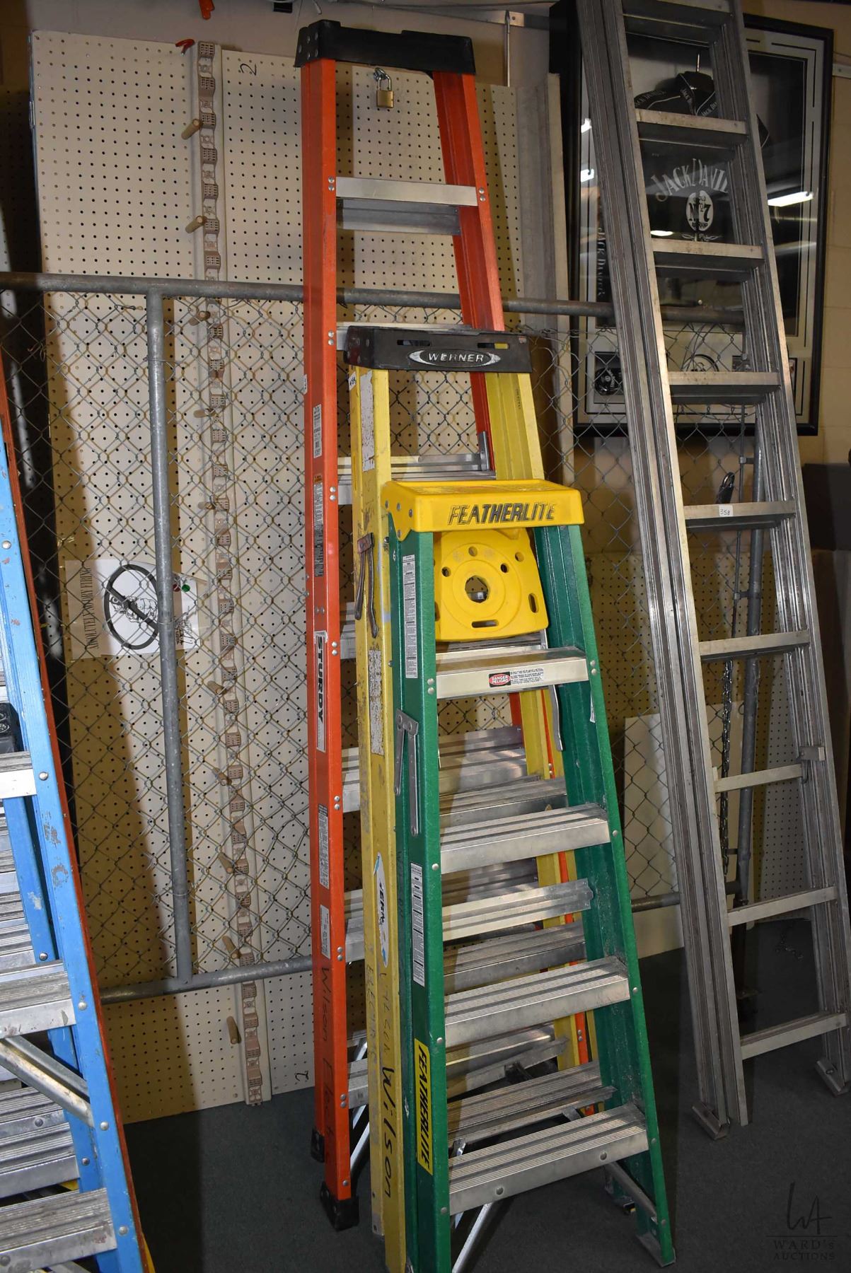 Sturdy 8' step ladder, a Werner 6' step ladder and a Featherlite 5' step ladder