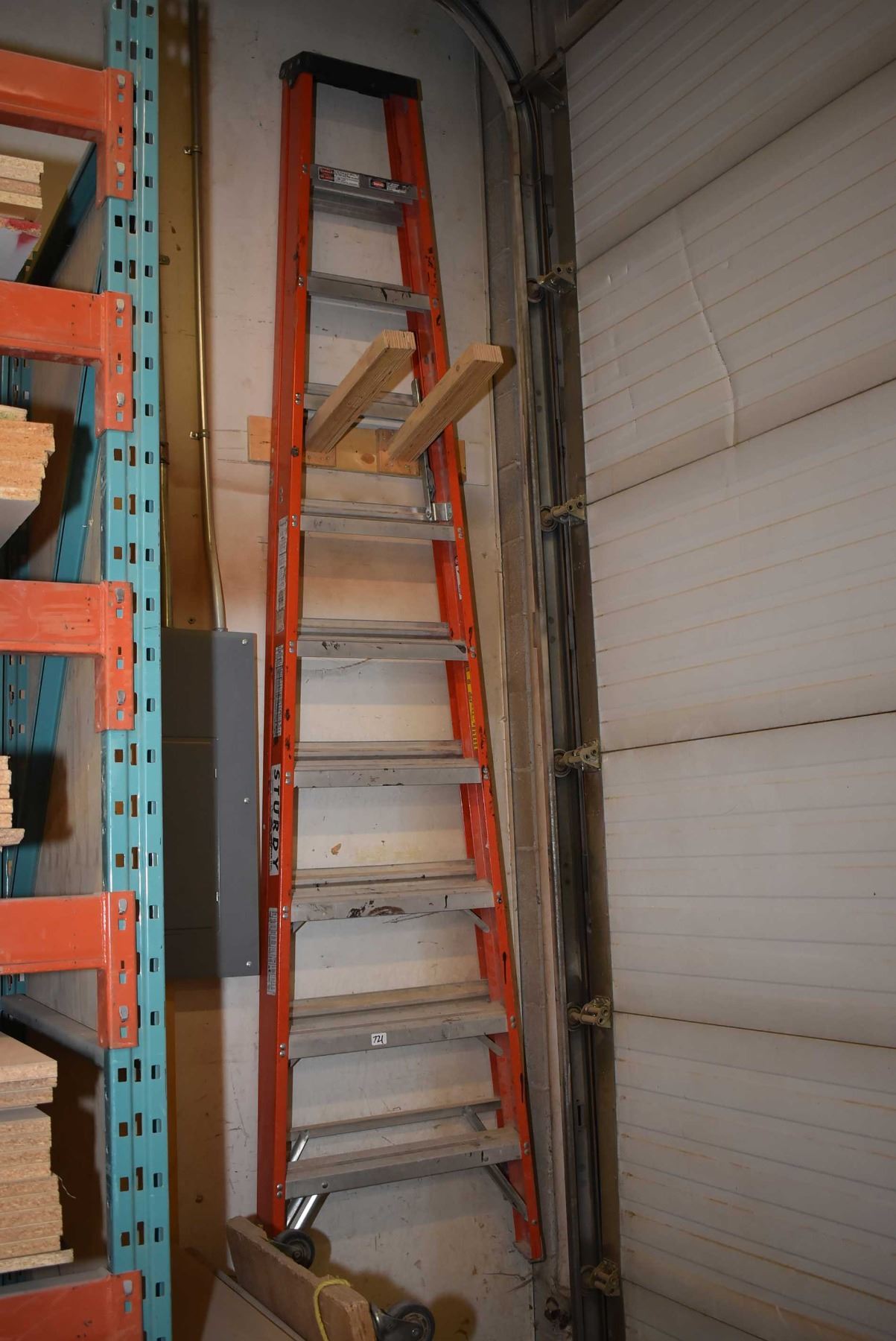 Sturdy brand 9' aluminium and fibreglass ladder-. (Update for March 27th. This item will be stored at the Ward's Auctions until it can be picked up. Go to www.wardsauctions.com for details)