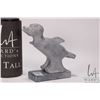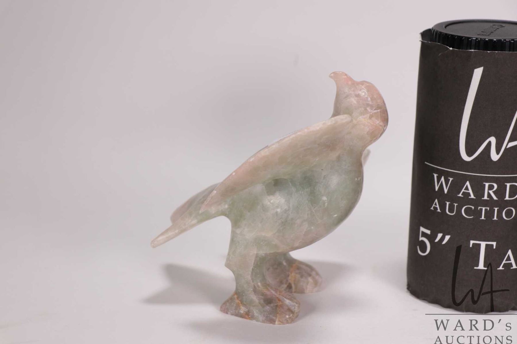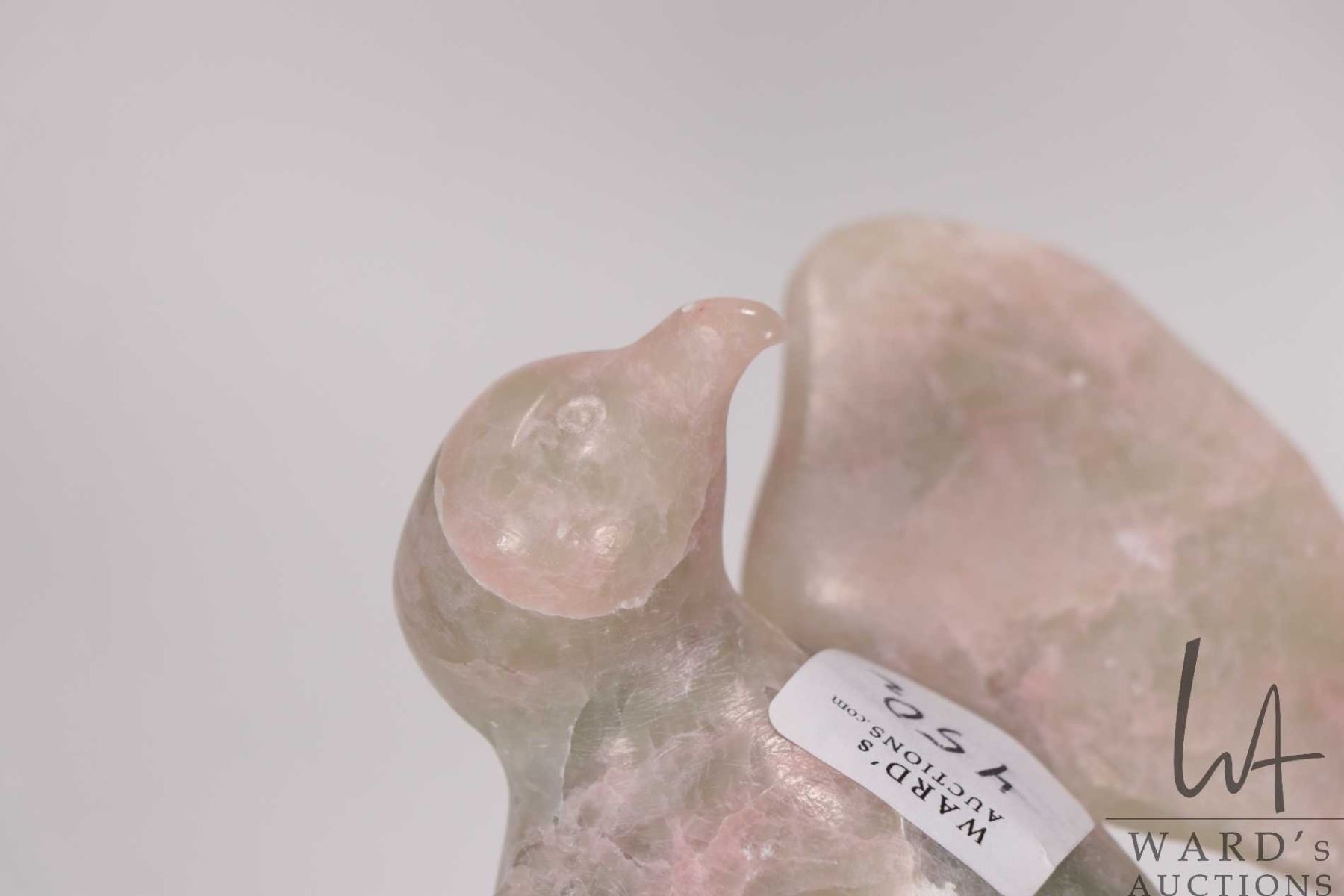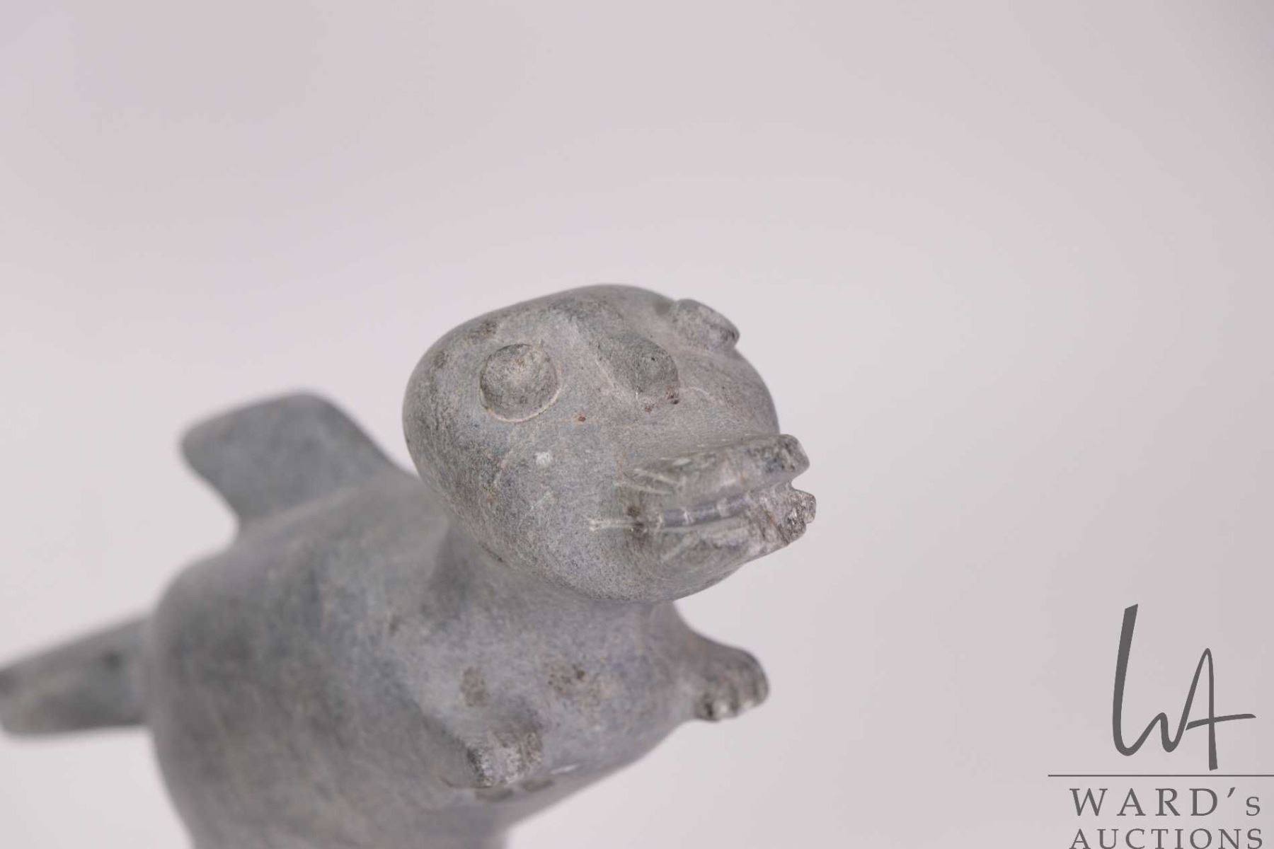 Stylized hand carved soapstone bird on base, 5 1/2" in height by artist A. Bersle and carved bird wi
