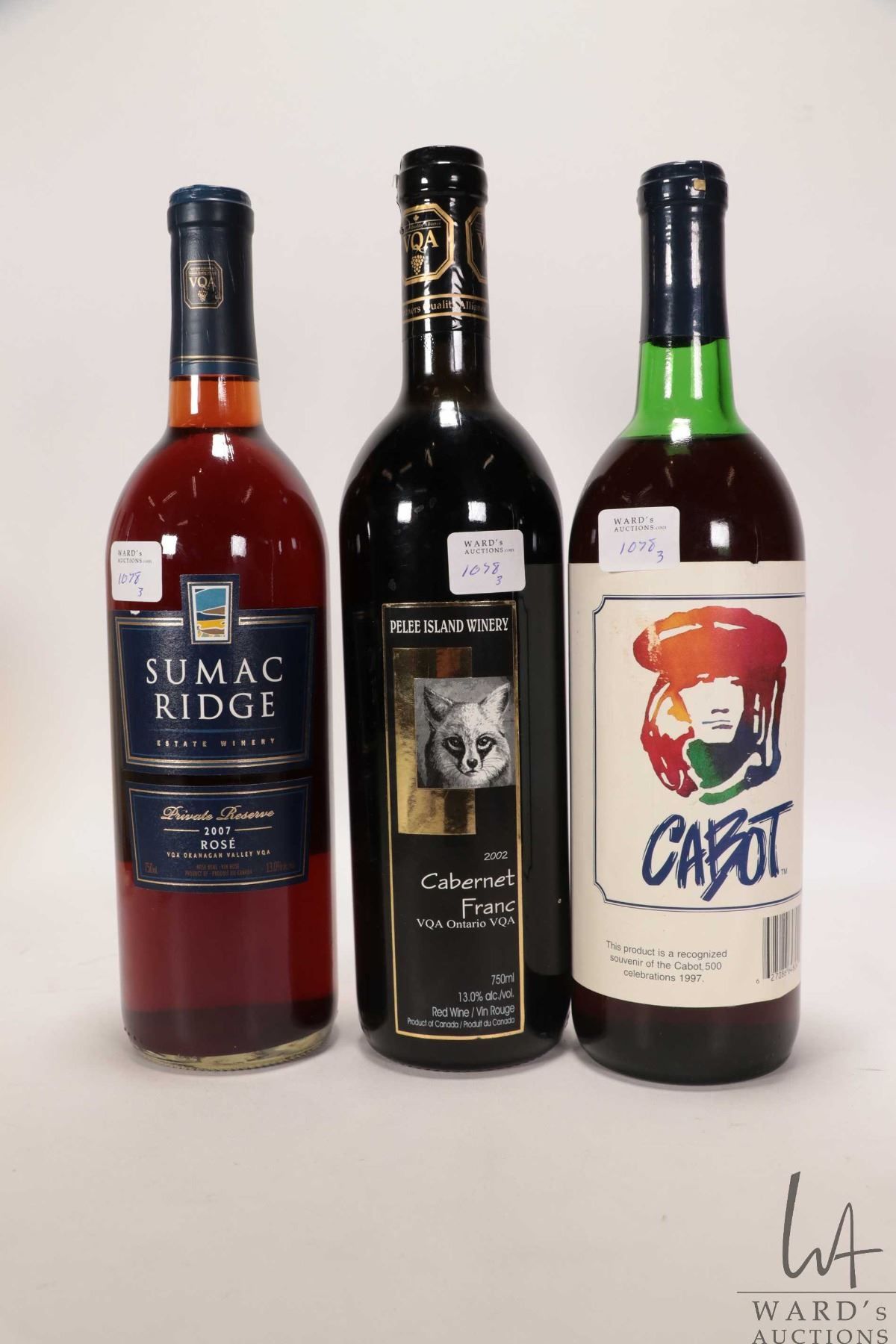 Sumac Ridge/ 2007/ Private Reserve/ 750ml/13% ABV, Rodrigues/ Blueberry Wine/ 750ml/ 8% ABV and Pelee Island Winery/ 2002/ Cabernet Franc/ 750ml/ 13% ABV Note: Alcohol cannot be insured by any courier in Canada. Local pick up is recommended. Canadian buyers only.