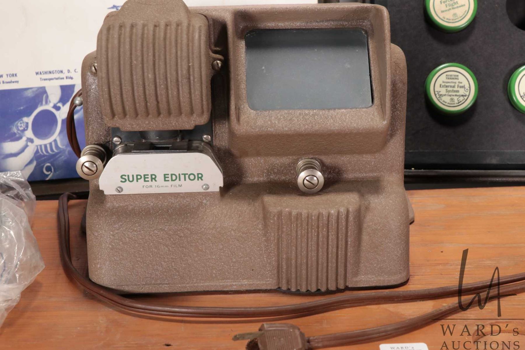 Super Editor 16mm film viewer and four spools of film, possibly tractor show footage and nineteen en