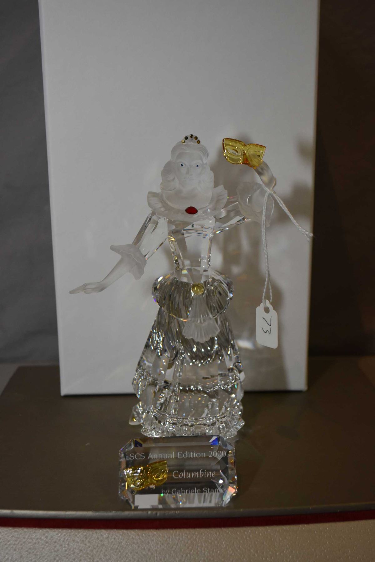 Swarovski Crystal figure from the Masquerade collection, annual edition 2000 "Columbine with original box and packaging, plinth and crystal placard