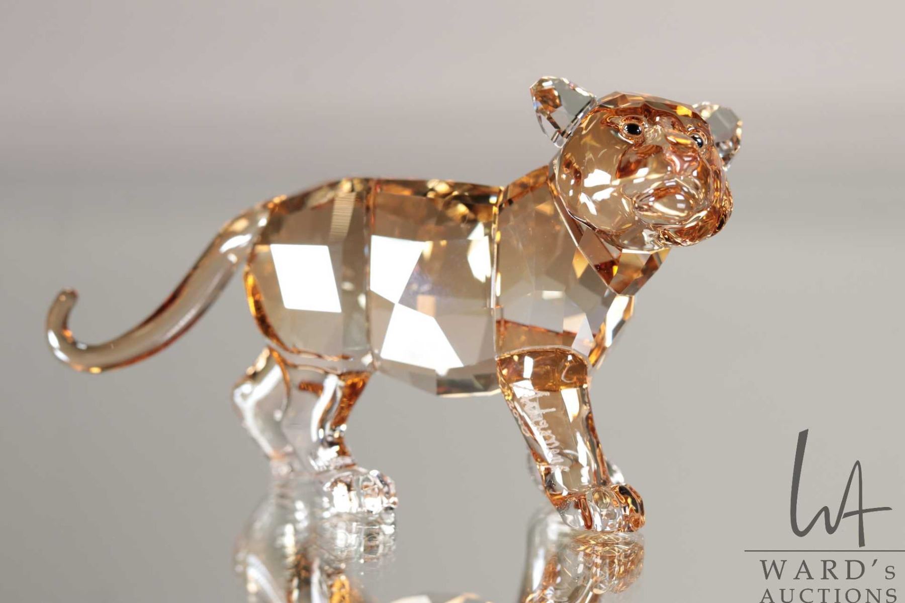 Swarovski amber crystal standing baby tiger no. 101667, 2 1/4" in height. Includes original box