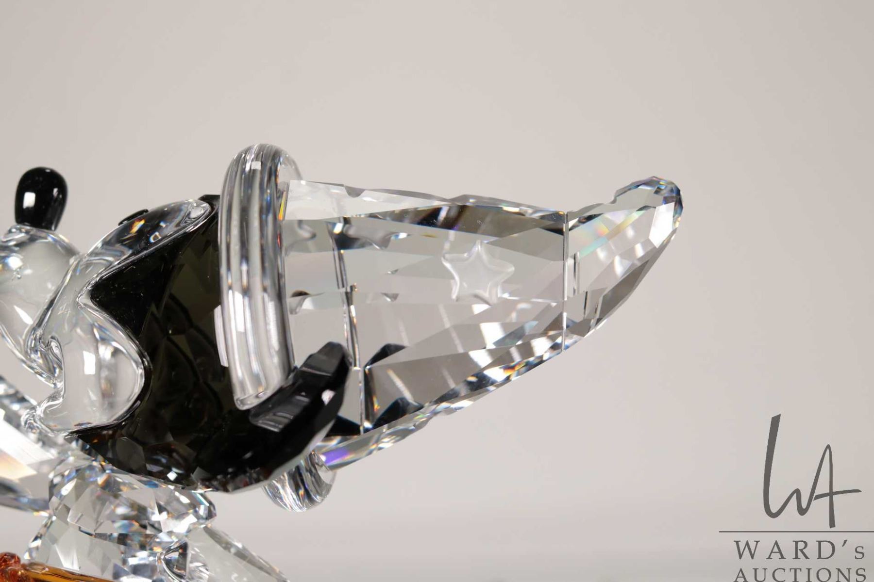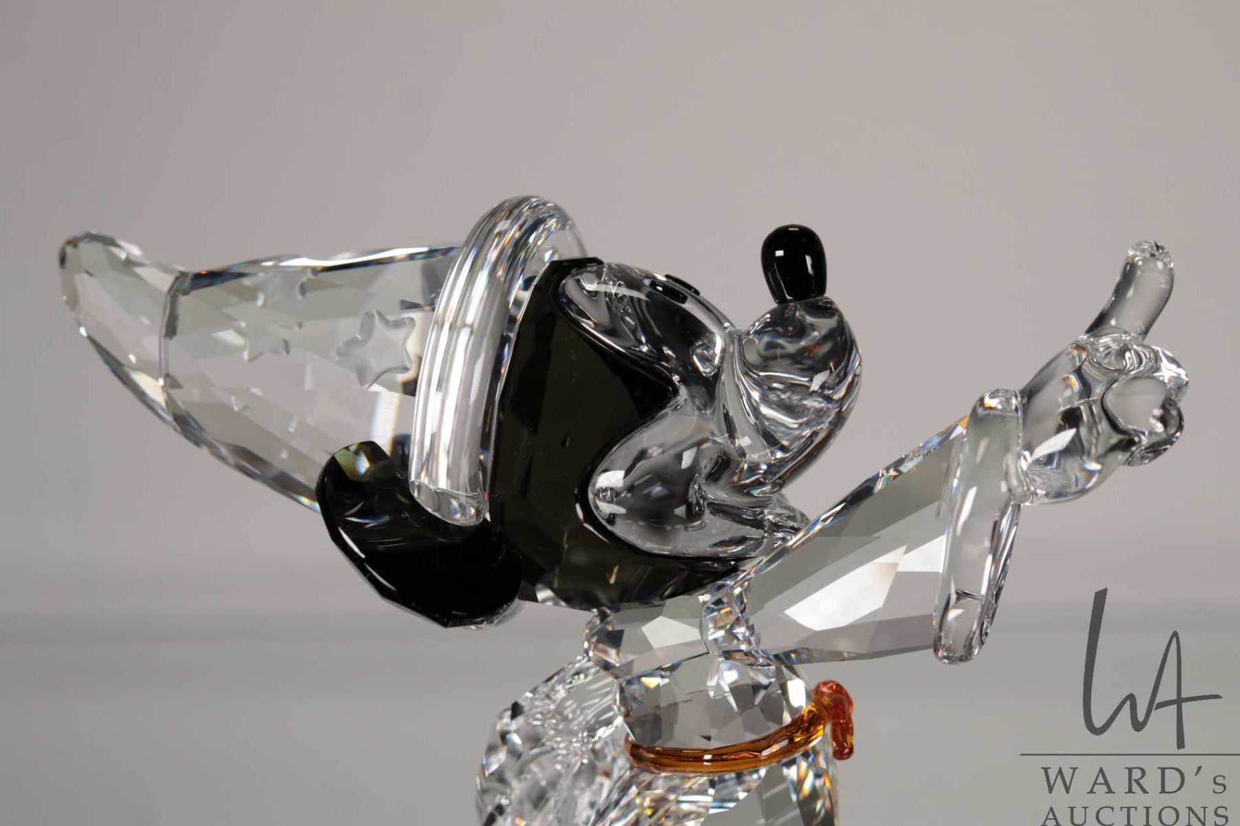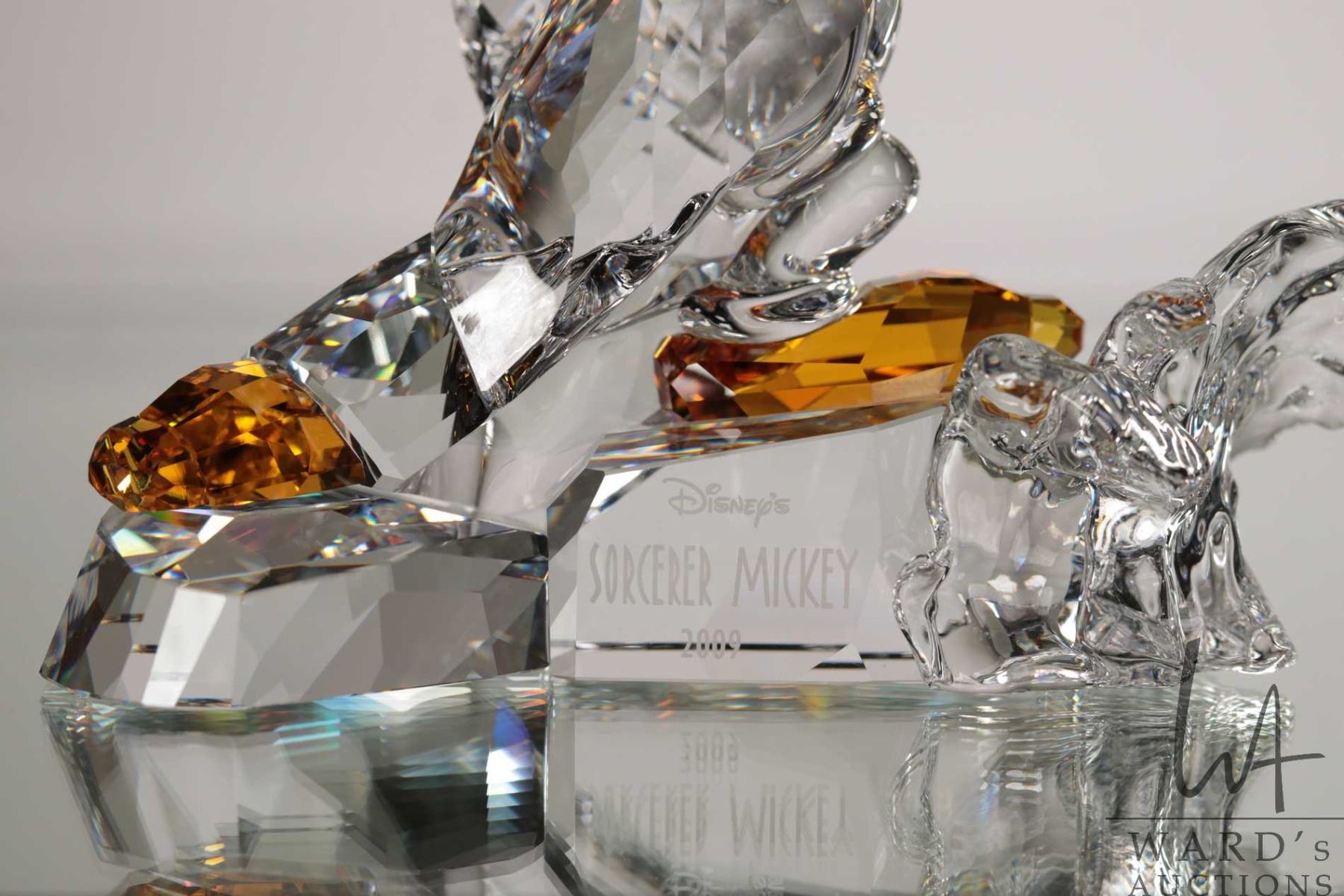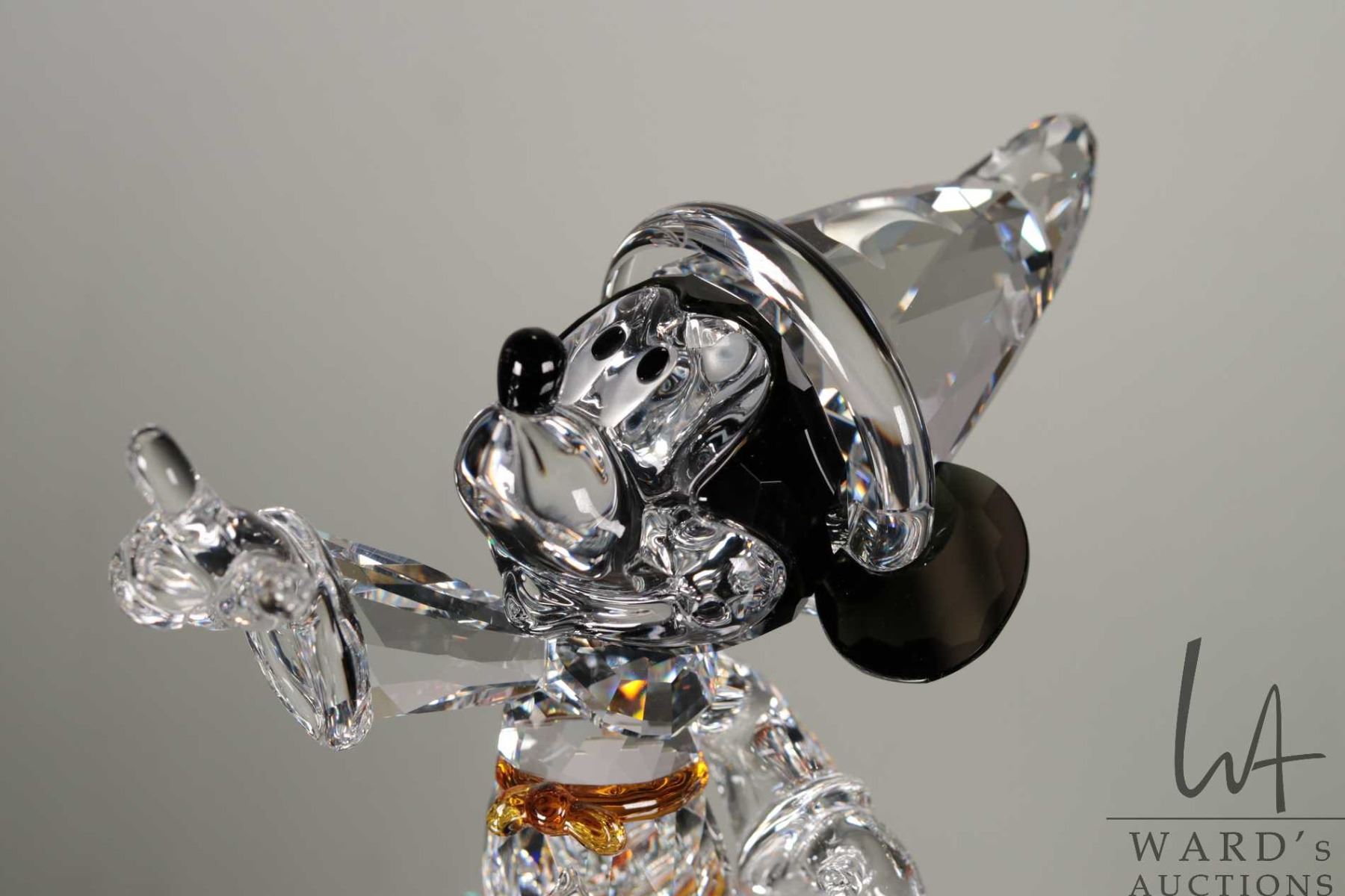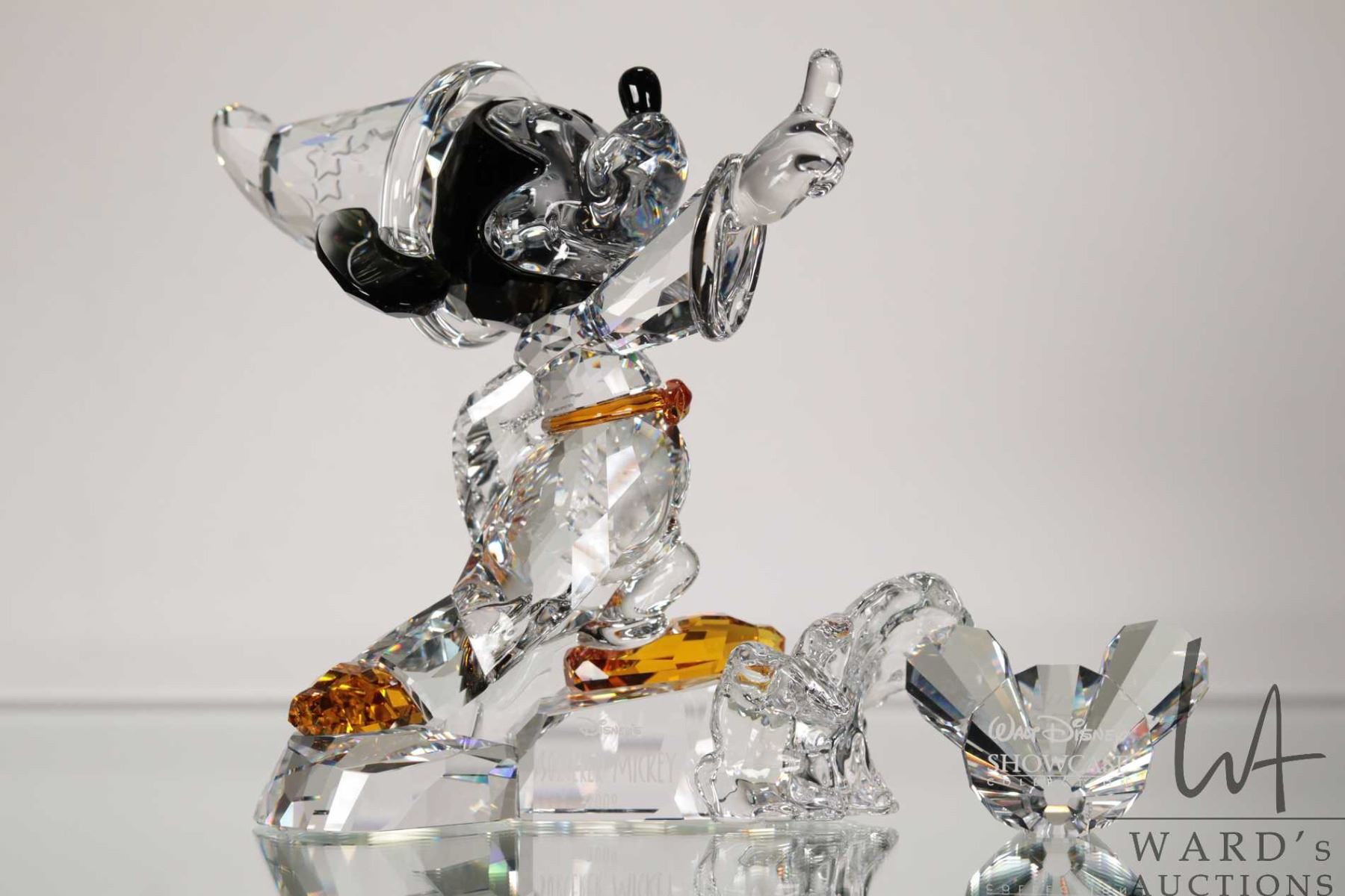 Swarovski crystal Disney "Mickey Sorcerer" limited edition 2009, no. 955438, 6" in height. Includes original box and a Walt Disney Showcase title plaque with original box. Includes a mirrored base