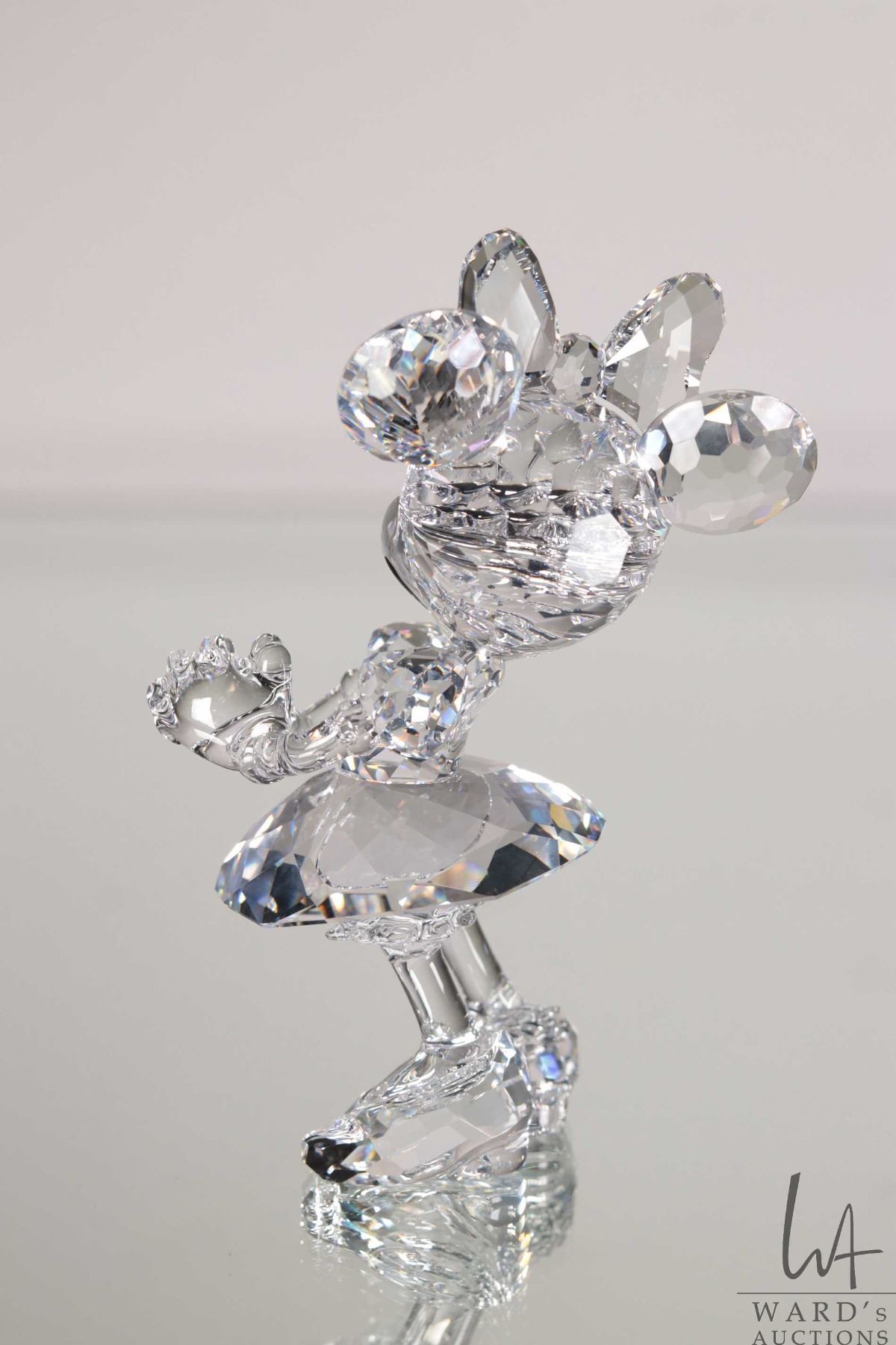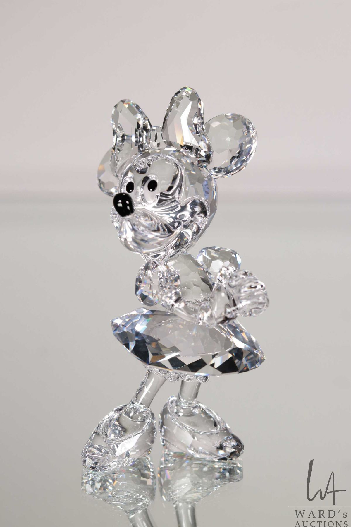 Swarovski crystal Disney "Minnie Mouse" no. 687436, 4 1/2" in height. Includes original box and a mirrored base