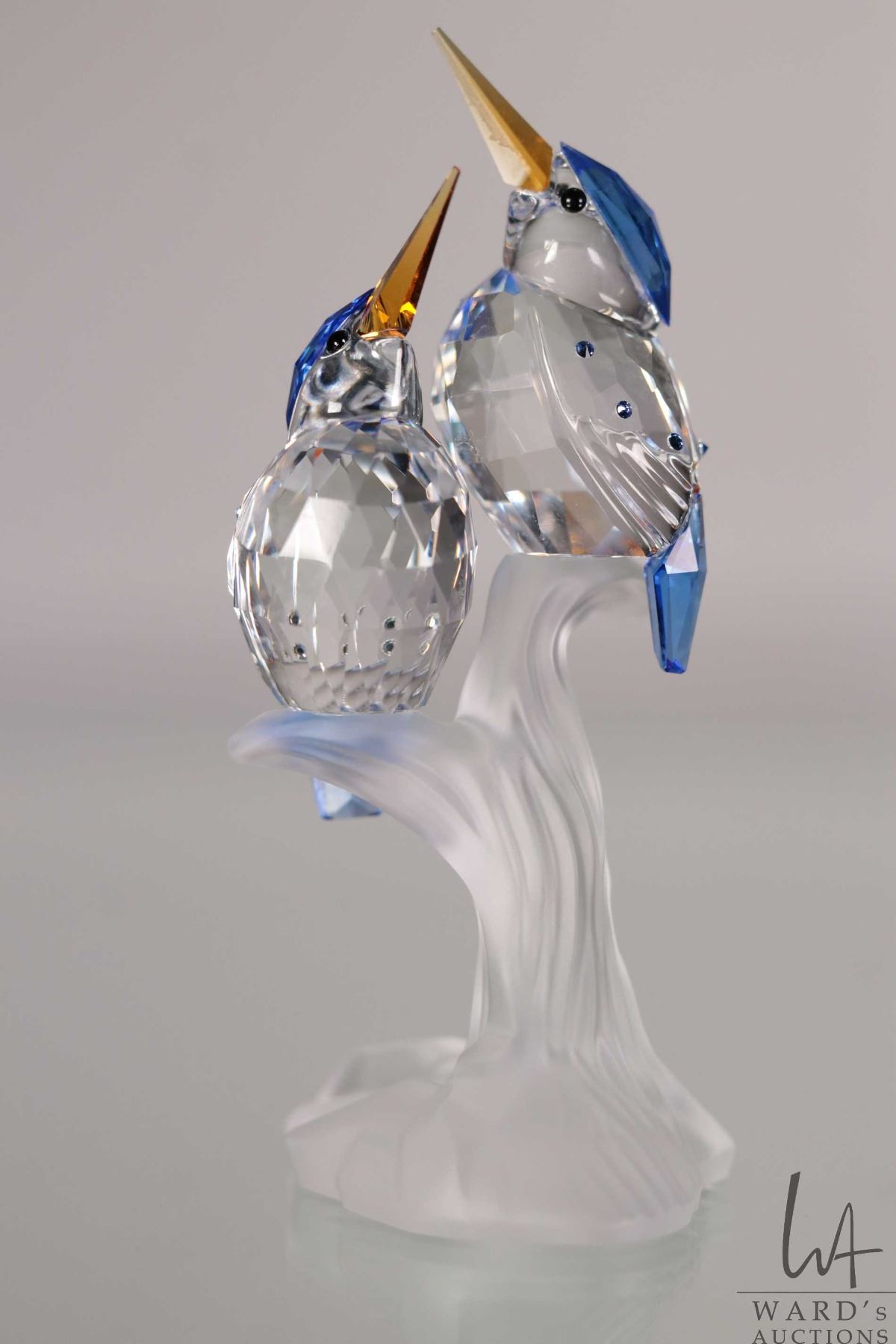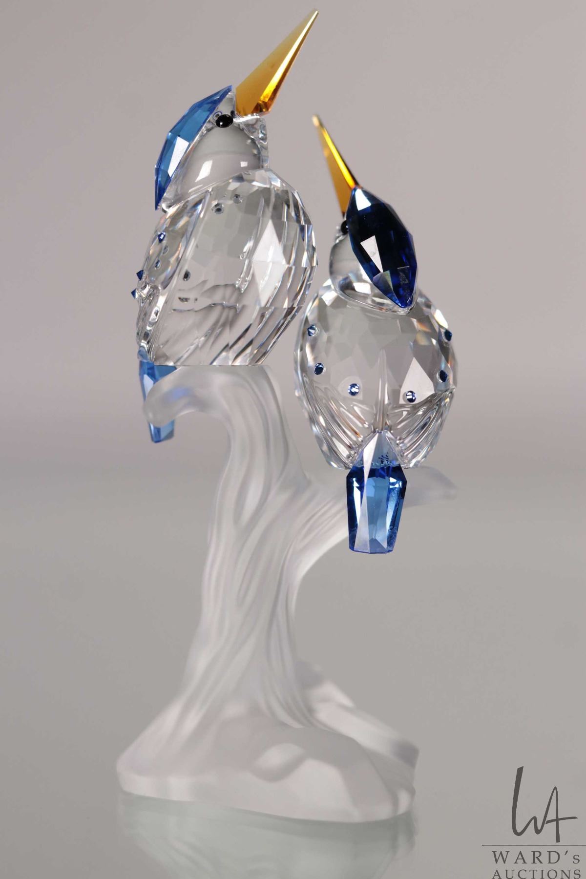 Swarovski crystal Malachite Kingfishers, no. 623323, 3 3/4" in height. From the Feathered Friends Co