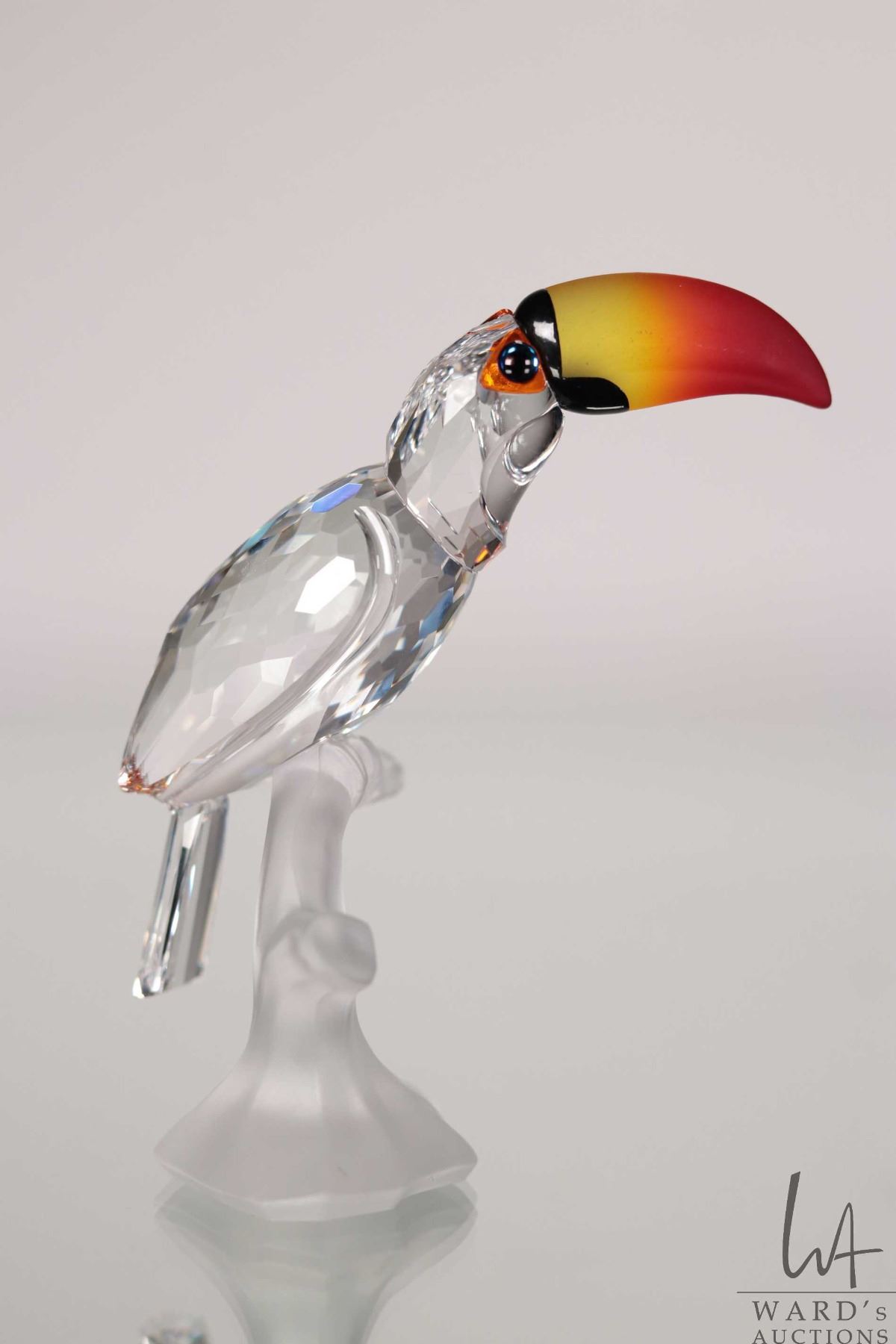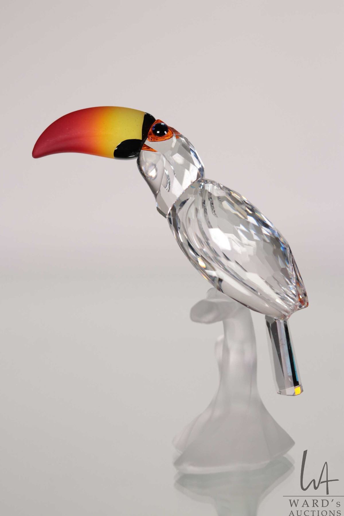 Swarovski crystal "Toucan" no. 234311, 3 1/4" in height. From the Feathered Friends Collection. Includes original box and a mirrored base