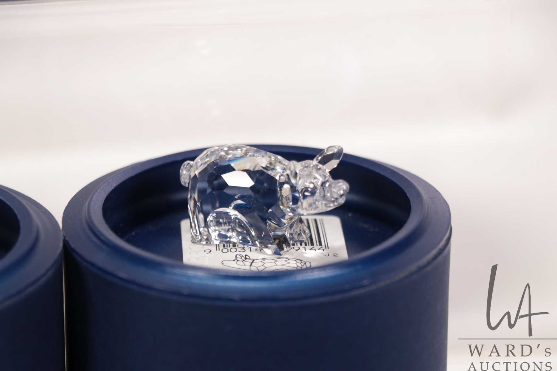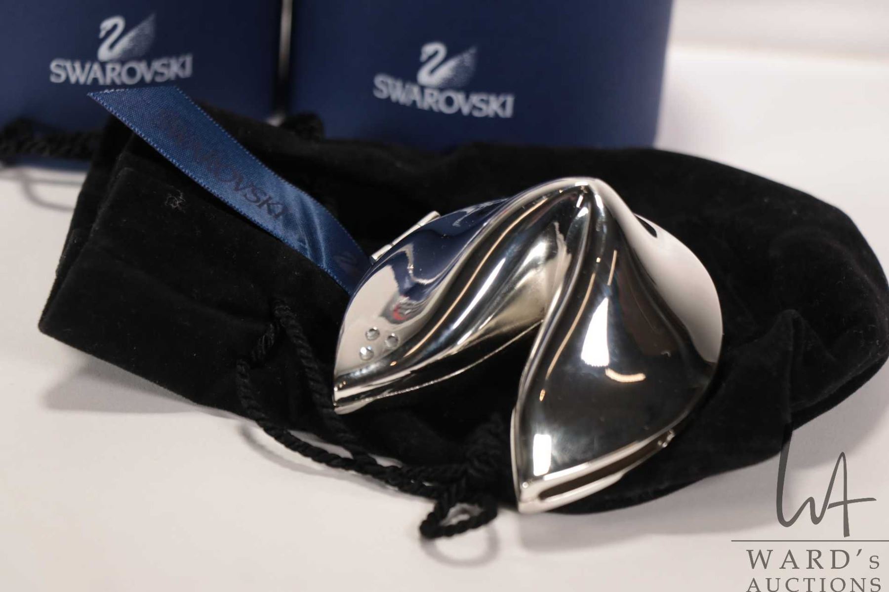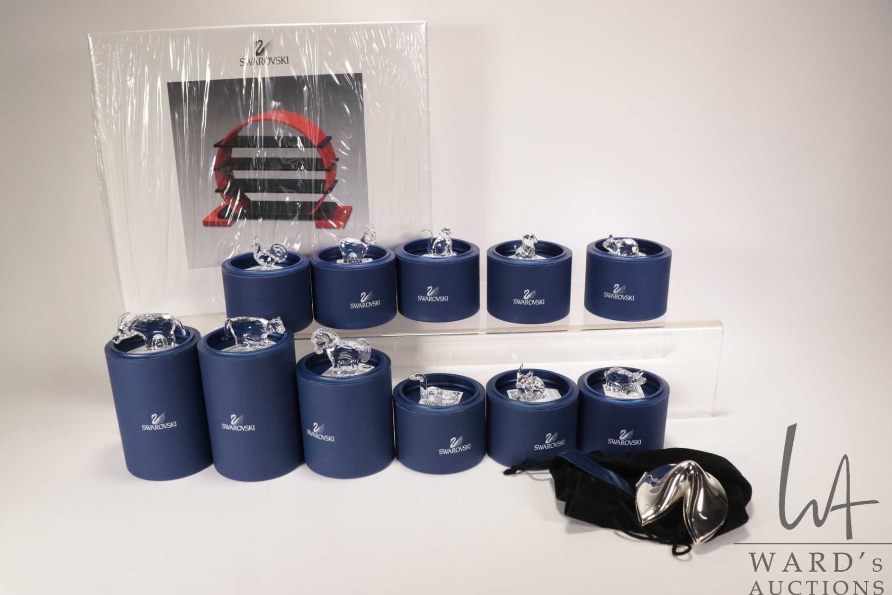 Swarovski crystal Zodiac with eleven zodiac animals and display stand plus a silver-plate Swarovski fortune cookie all with original boxes and packaging