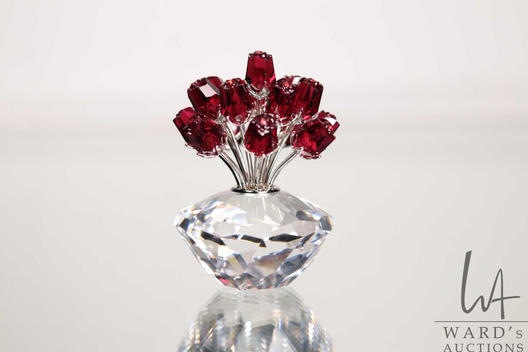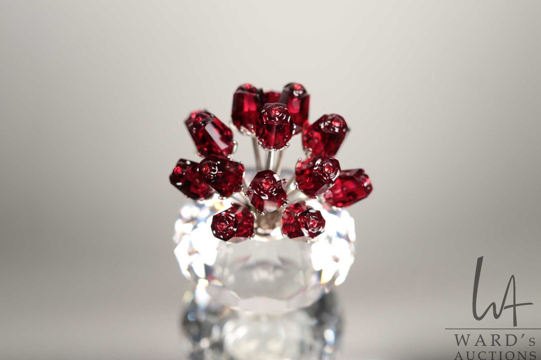 Swarovski crystal vase of red roses. no. 283394, 2 3/4" in height. Designed for the 15th anniversary