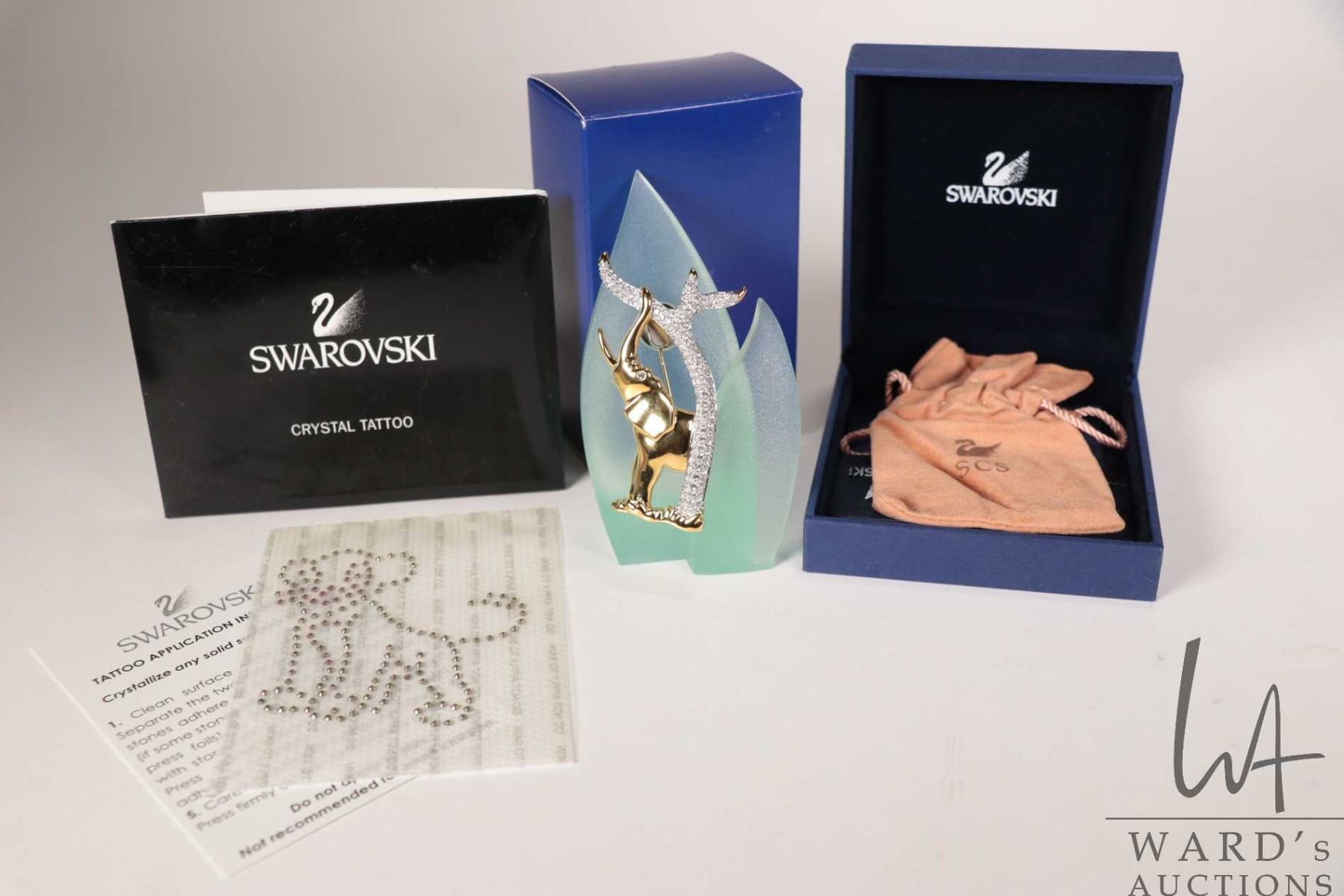 Swarovski gold plated elephant brooch plus a Swarovski magnetic brooch holder and a crystal tattoo