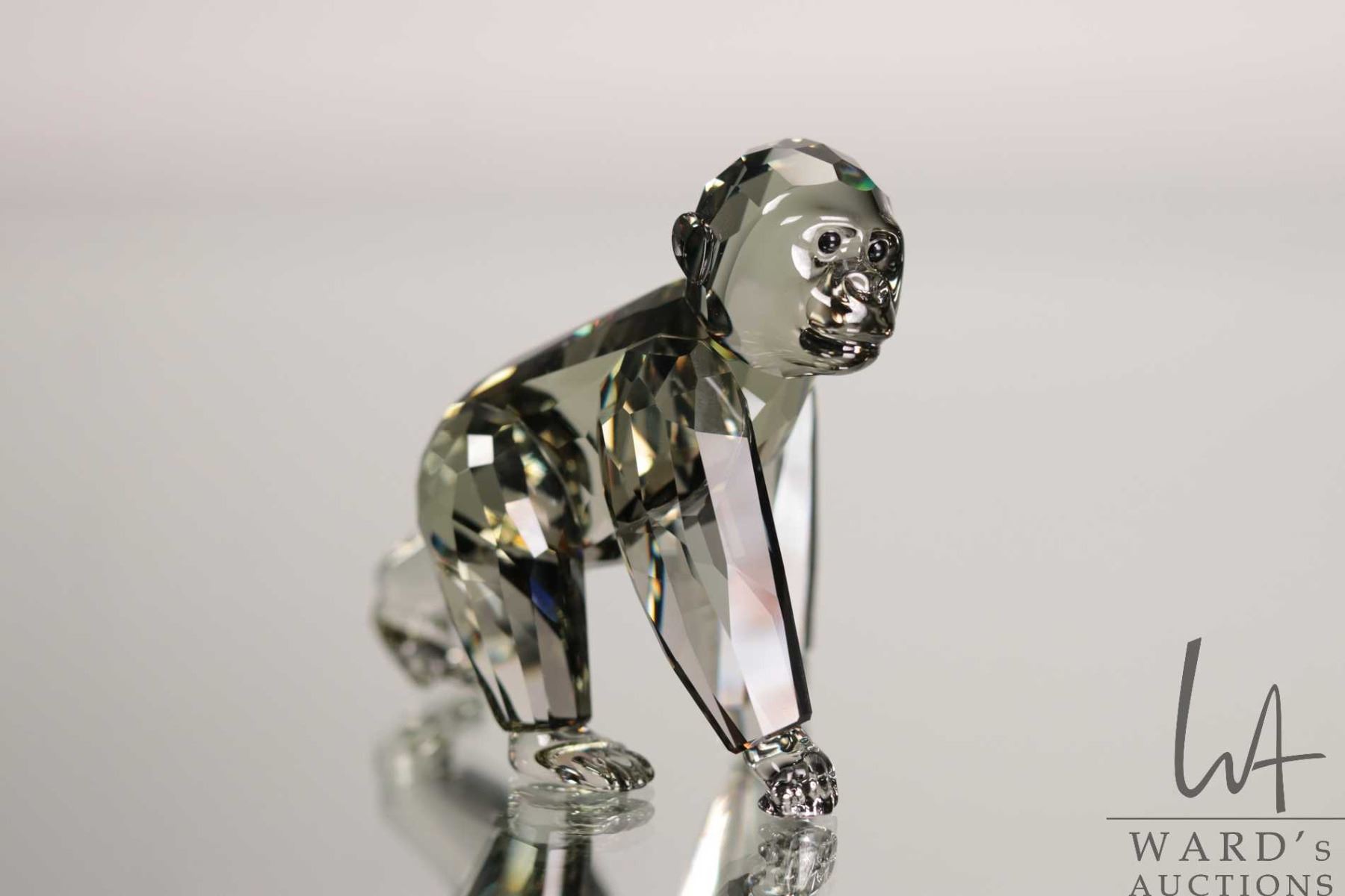 Swarovski smoked crystal "Gorilla Cub" no. 952504, 2 1/2" in height. Includes original box and a mir