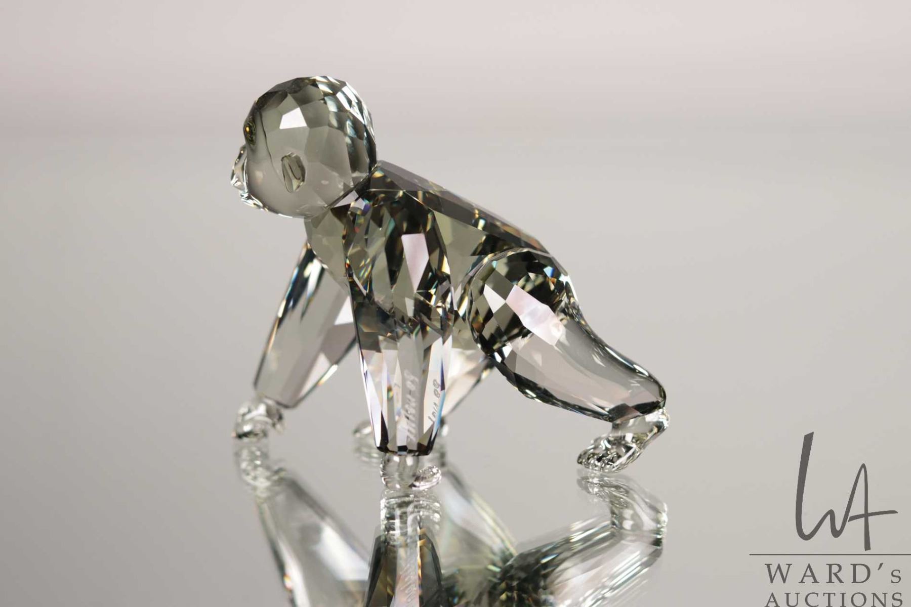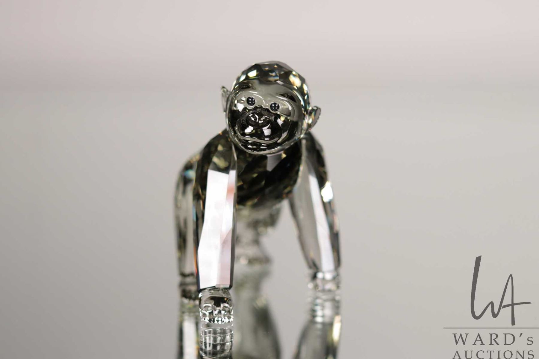 Swarovski smoked crystal "Gorilla Cub" no. 952504, 2 1/2" in height. Includes original box and a mirrored base