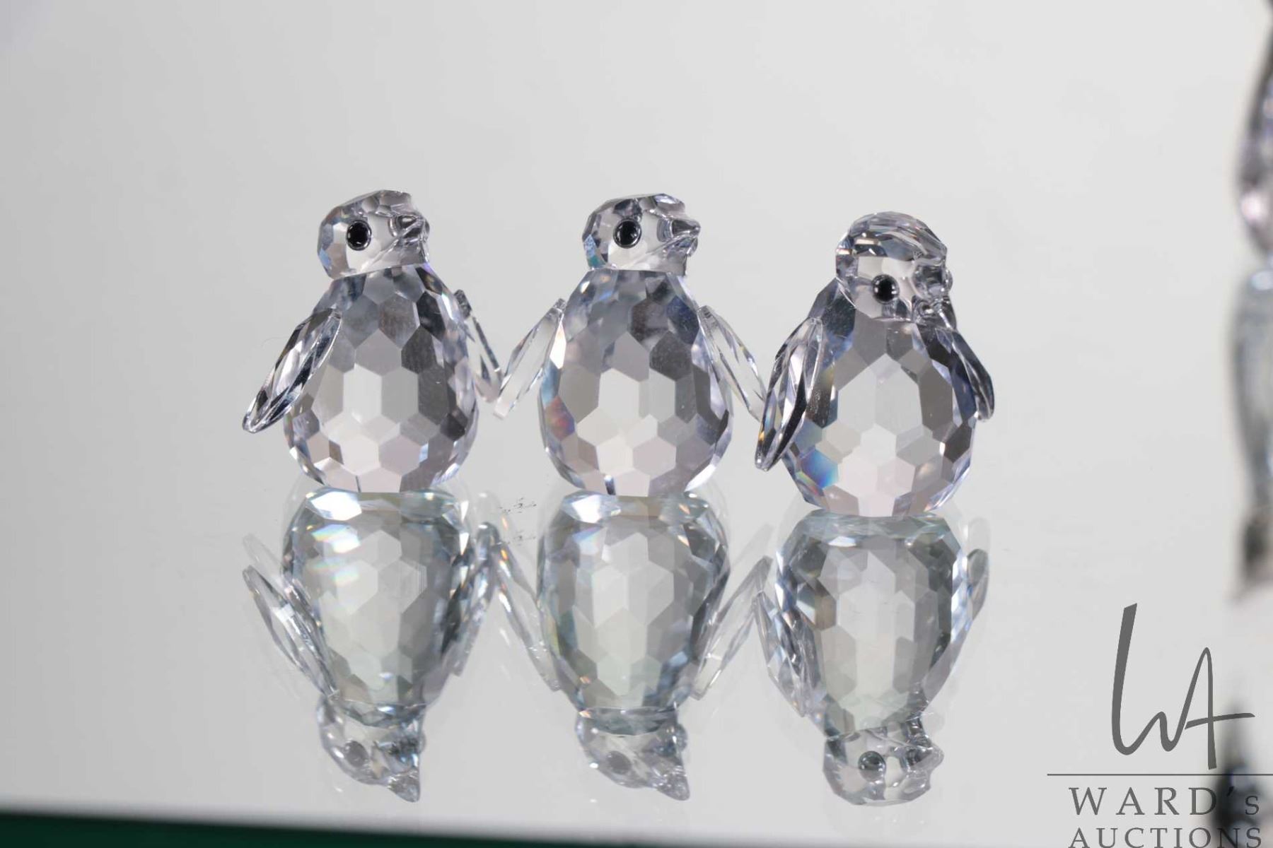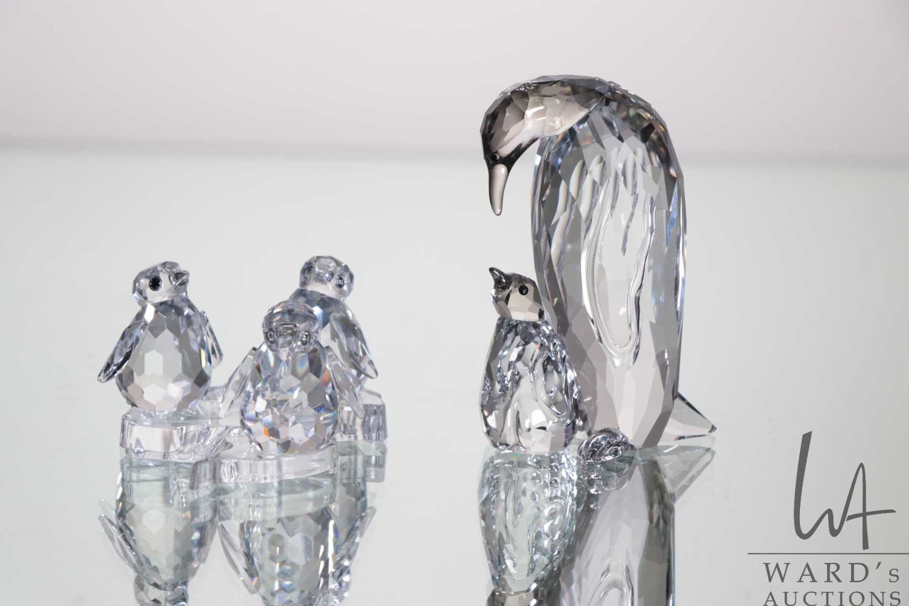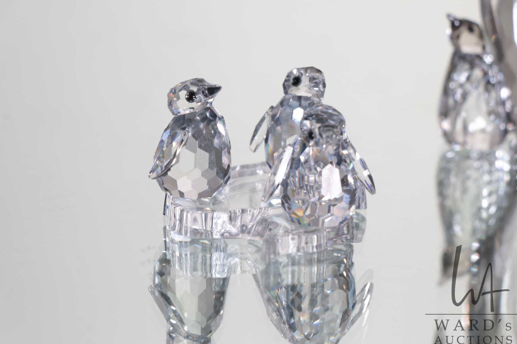Swarvoski crystal Penguin with baby and three small Swarvoski crystal penguins