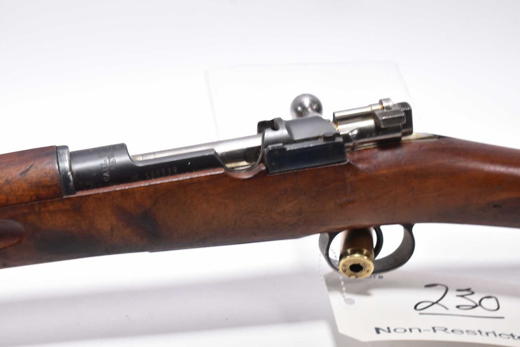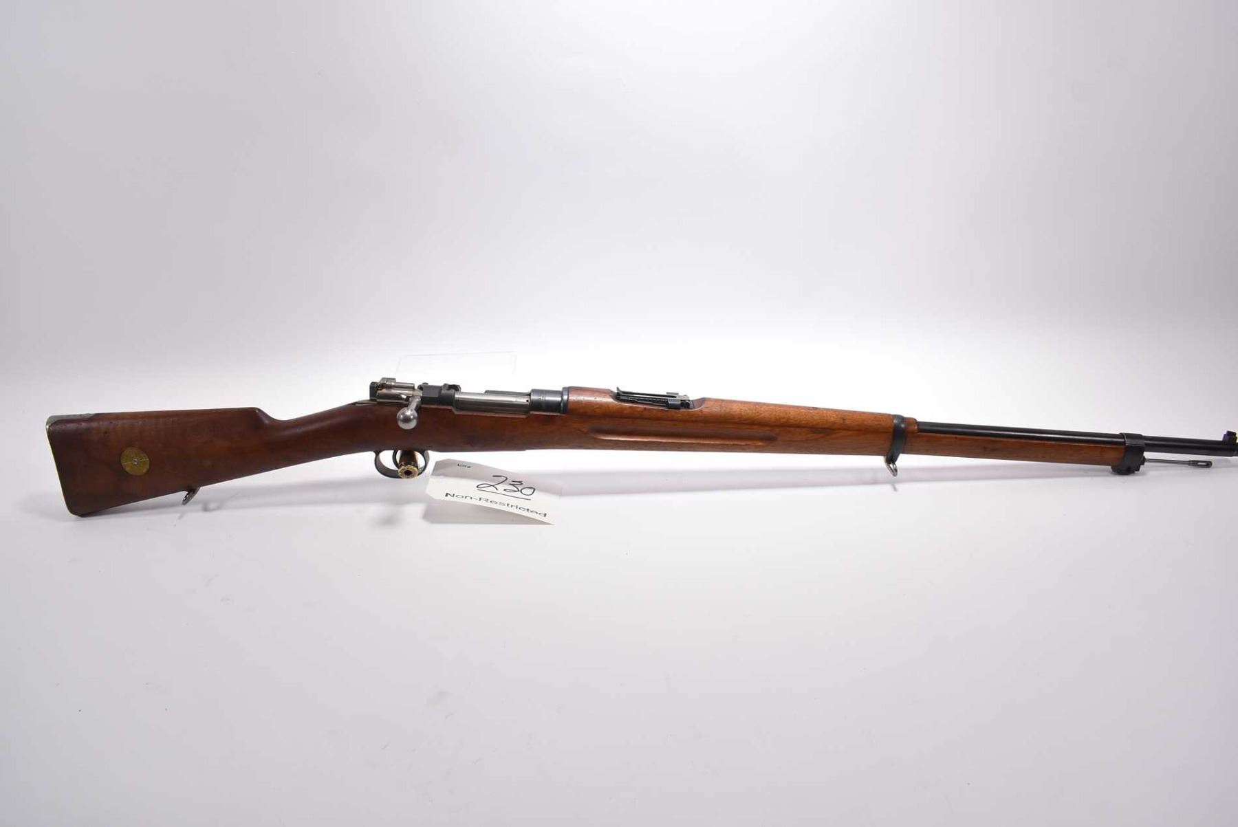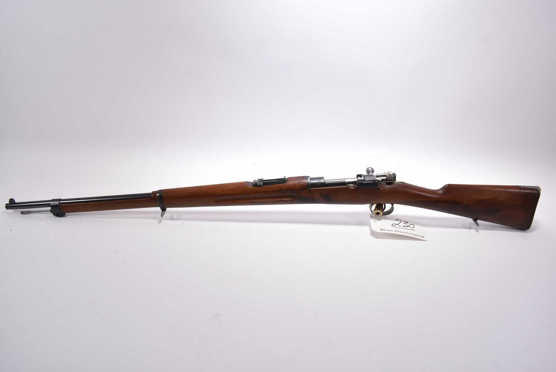Swedish Mauser ( Carl Gustaf ) Model 1896 Rifle 6.5 x 55 Swedish Mauser Cal Full Wood Military Bolt Action Rifle w/ 29 1/2" bbl [ blued finish, barrel sights, appears matching numbers including the bolt, w/ cleaning rod and sling swivels, stock cracked by butt plate, various marks and scratches to wood and metal ] Ser # 196989