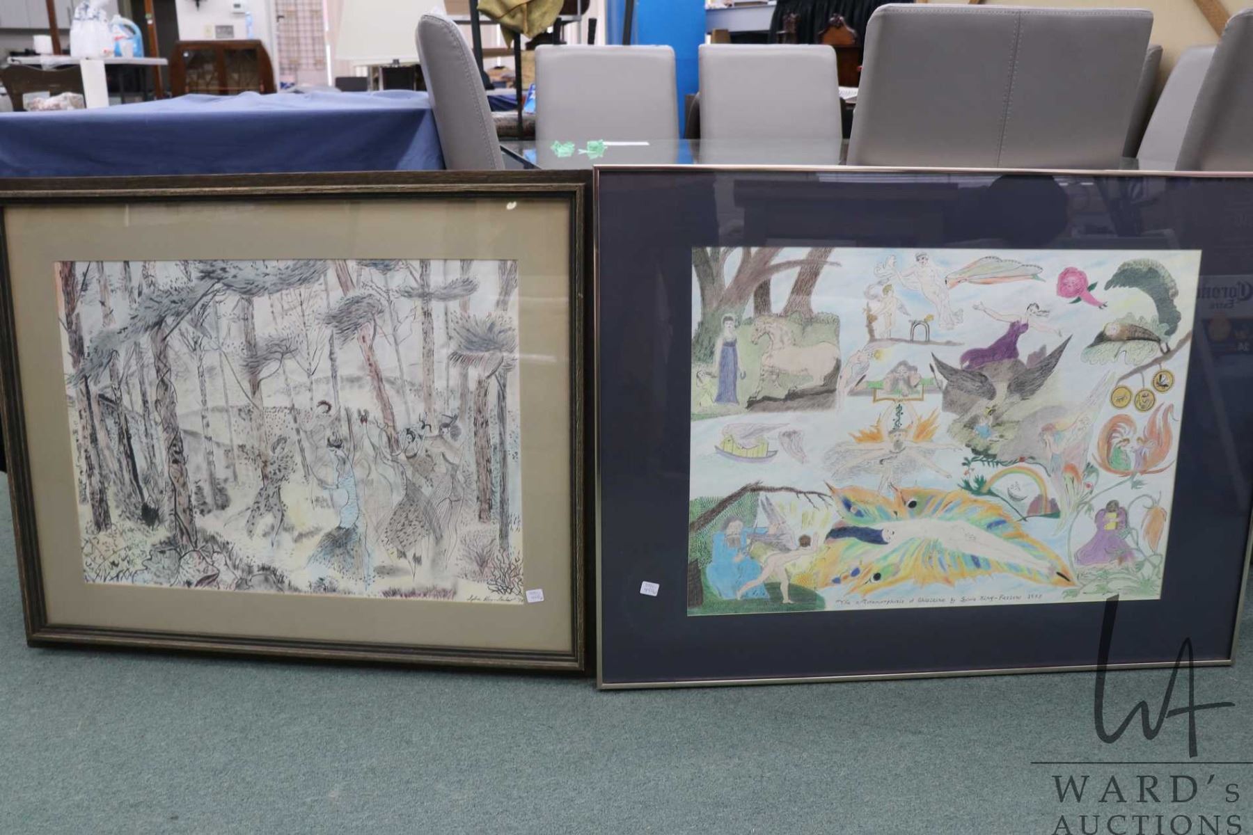 Sylvia King-Farlow, two framed original coloured pencil drawings titled "The Metamorphosis of Ghislaine" 21" X 30" and one untitled 21" X 28" Note: Shipping not available for this item, Local pick-up only.
