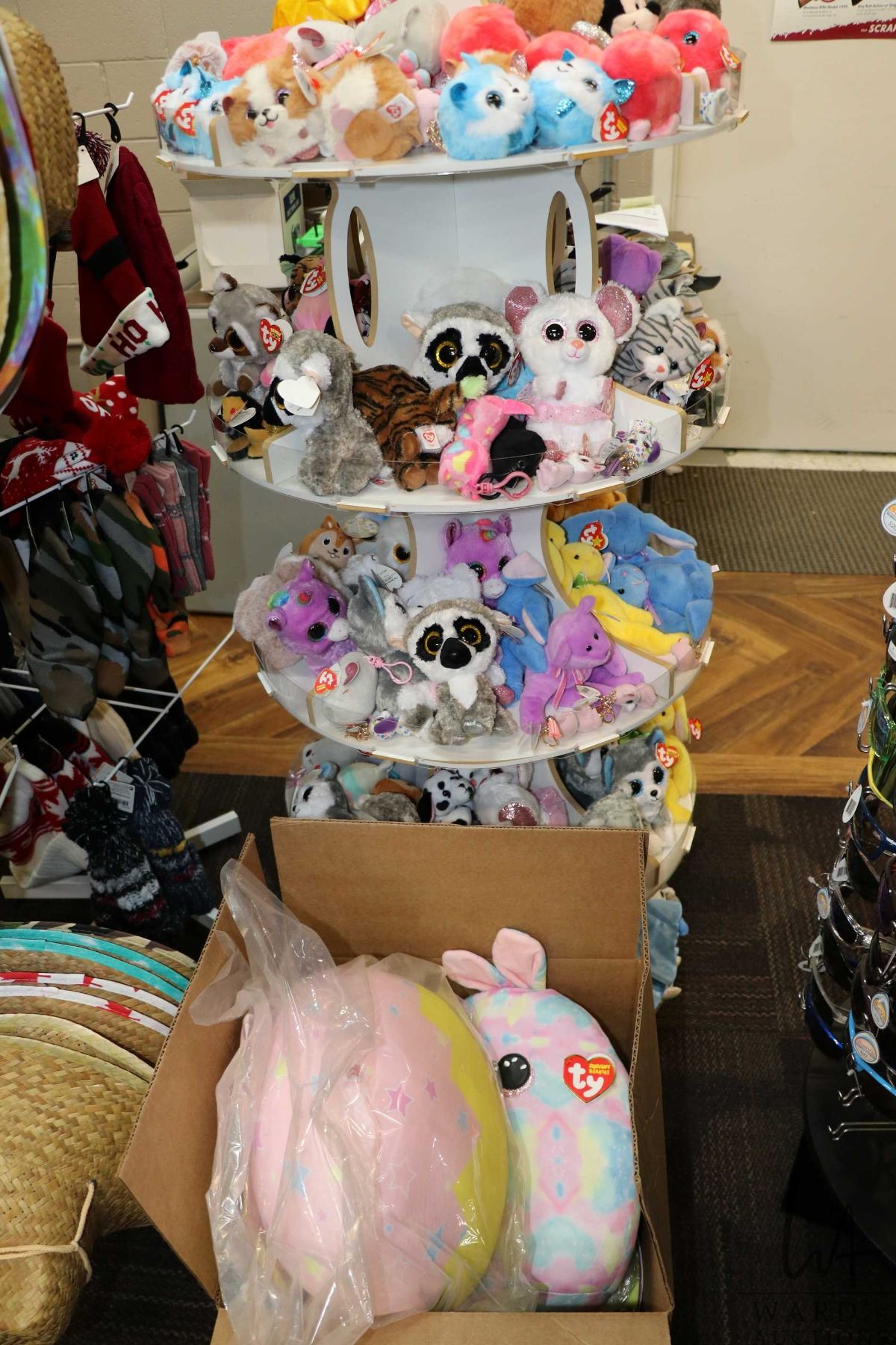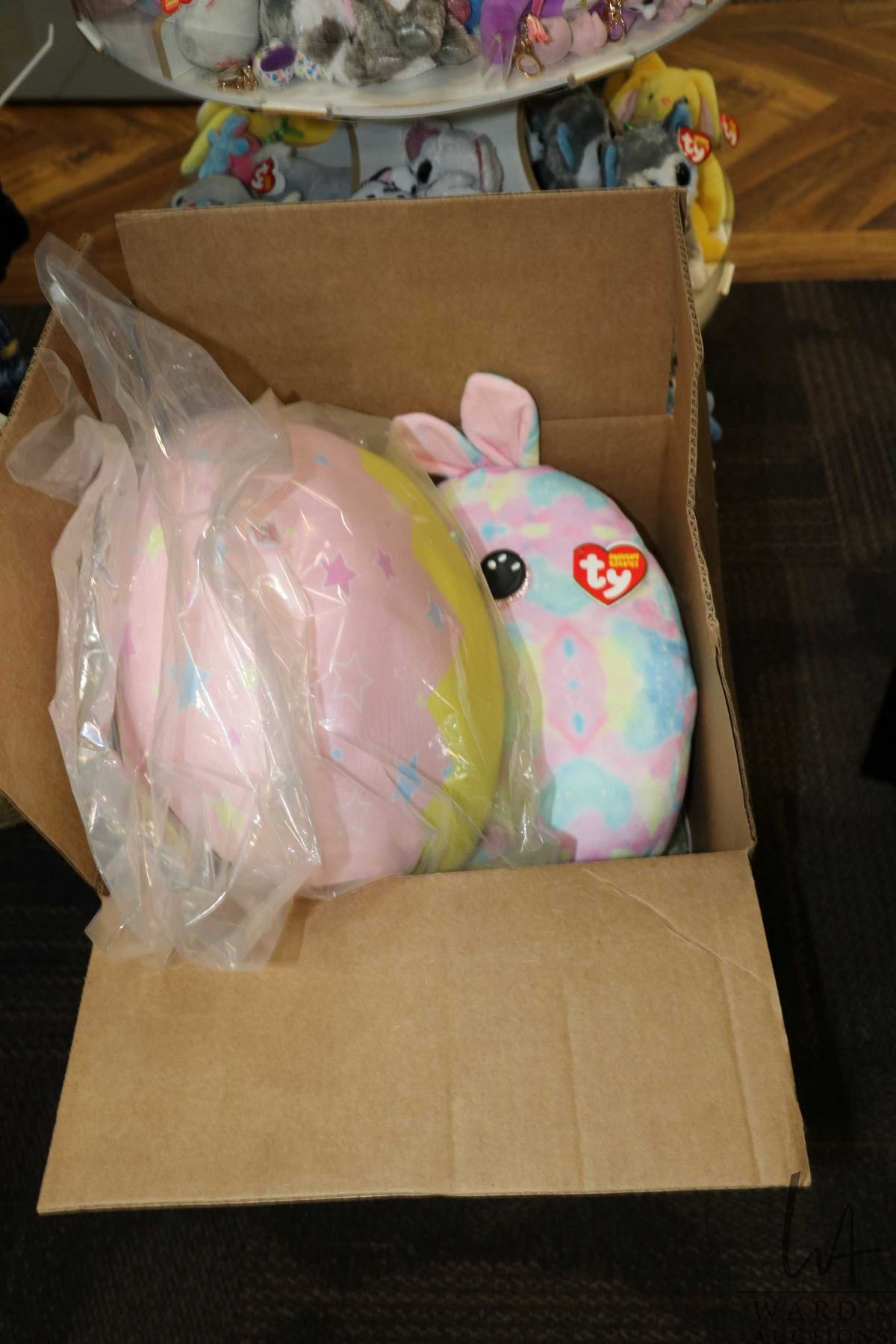 TY display rack of Beanie Babies plus a box of Beanie Babies