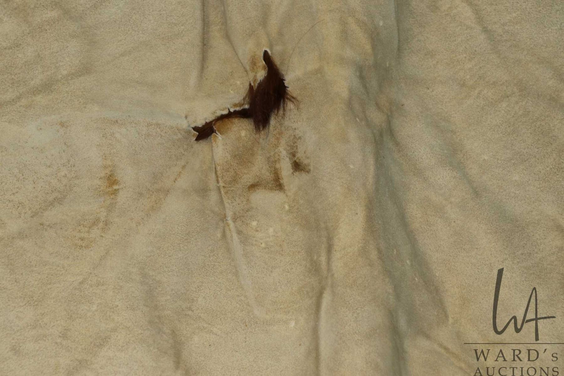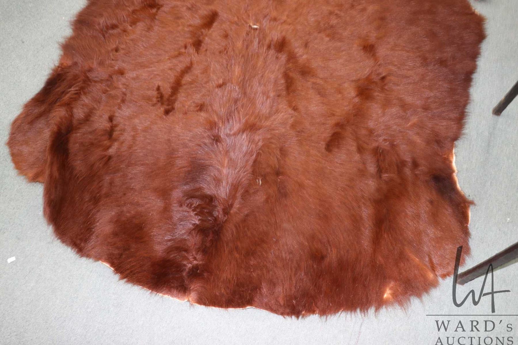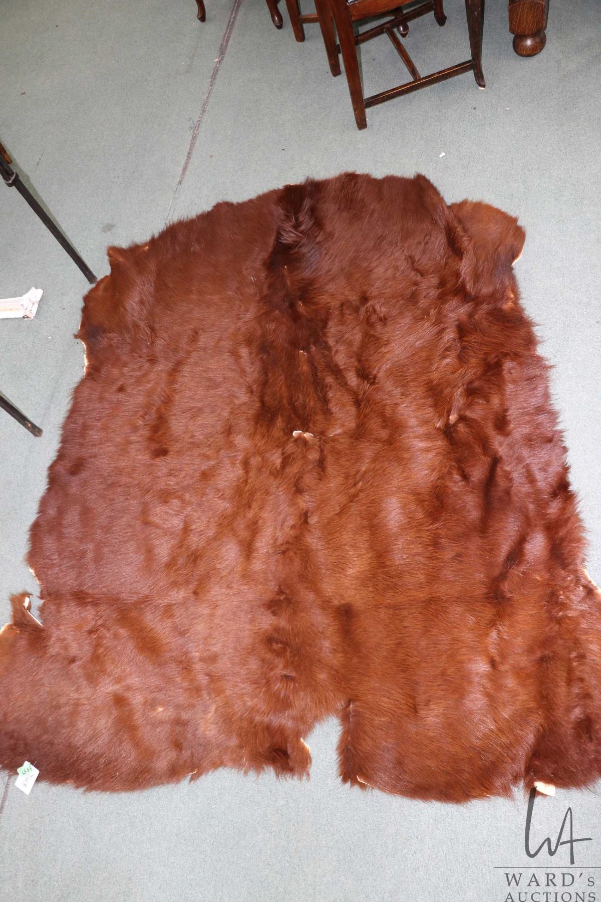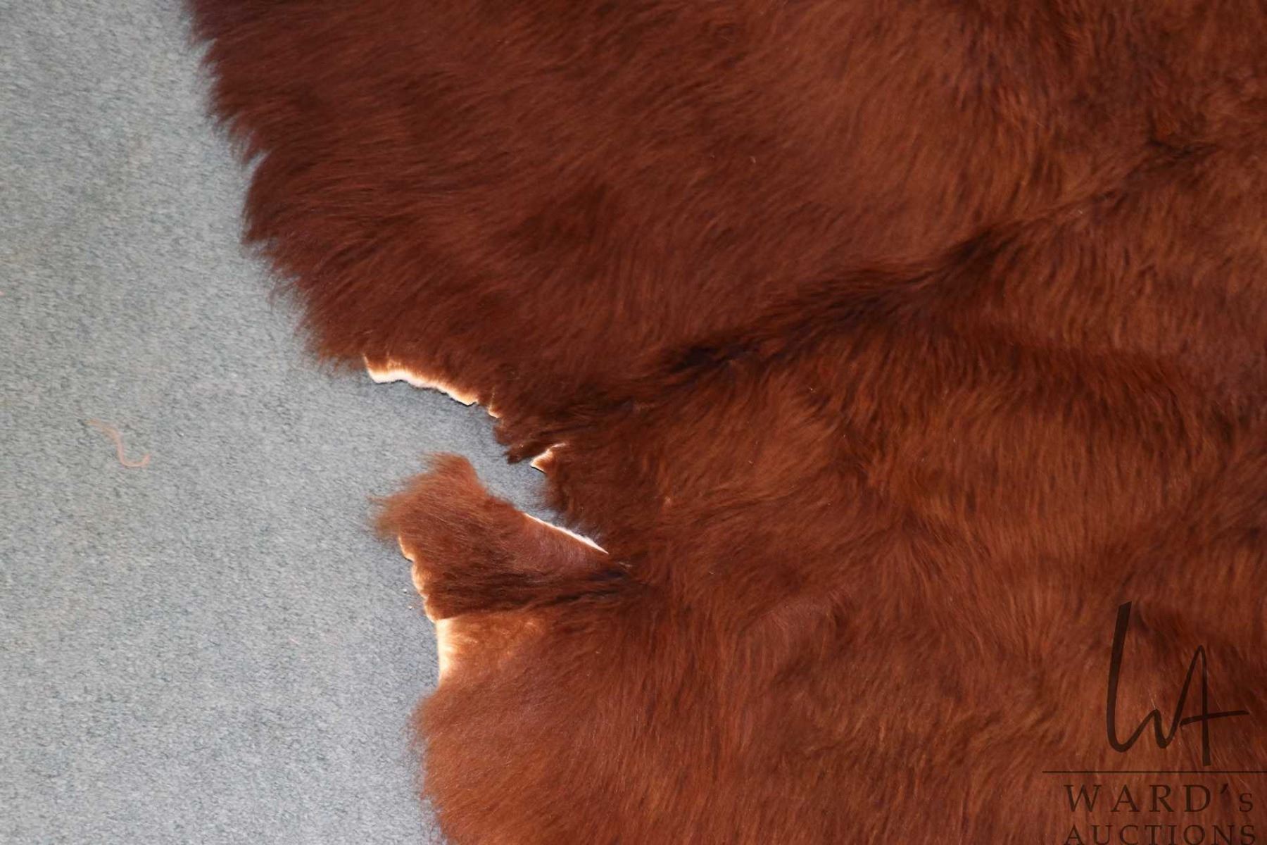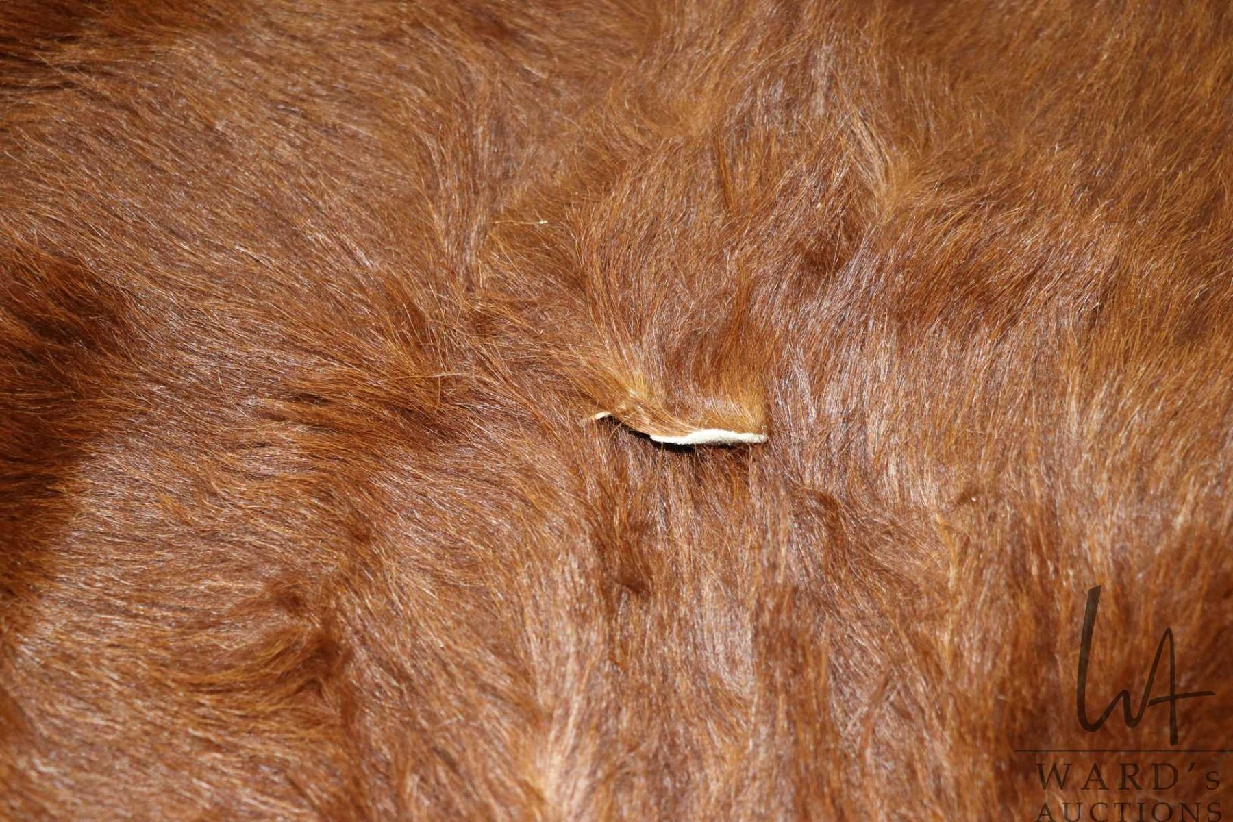 Tanned animal hide, appears to be a highland cattle rug, approximately 68" X 63"