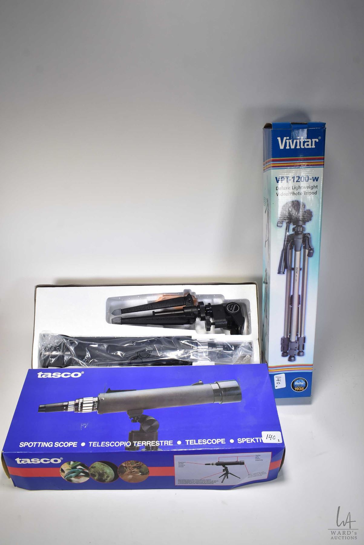 Tasco 20X-60-60mm, no. 17EV spotting scope with tri-pod plus a Vivitar VPT-1200-W lightweight tri-pod