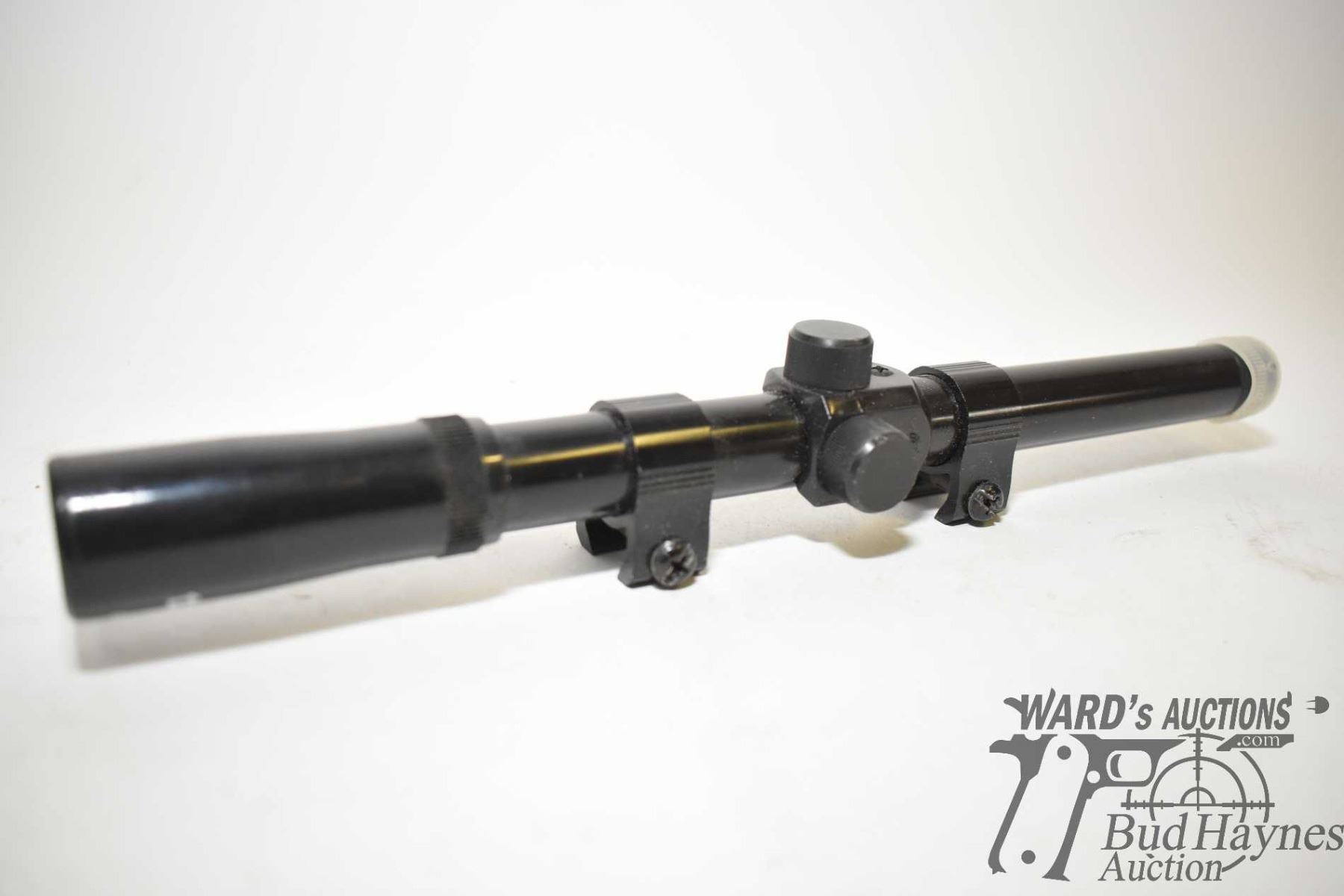 Tasco 4 x1.5 scope, assorted mounts and rings, bag Tasco 4 x1.5 scope, assorted mounts and rings, ba
