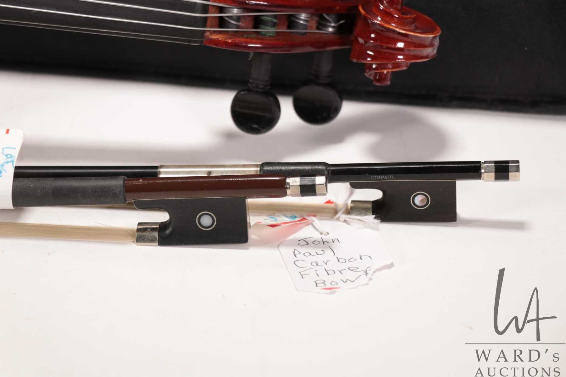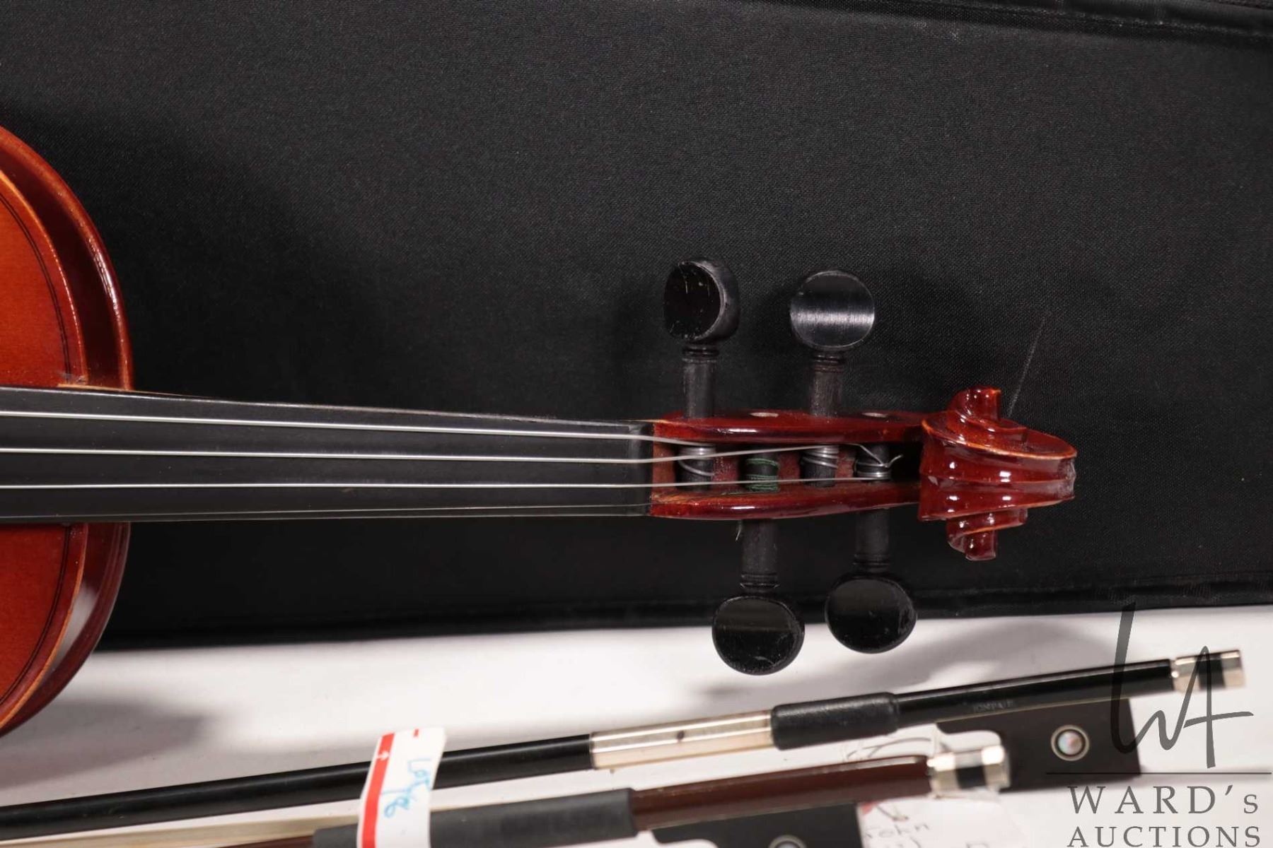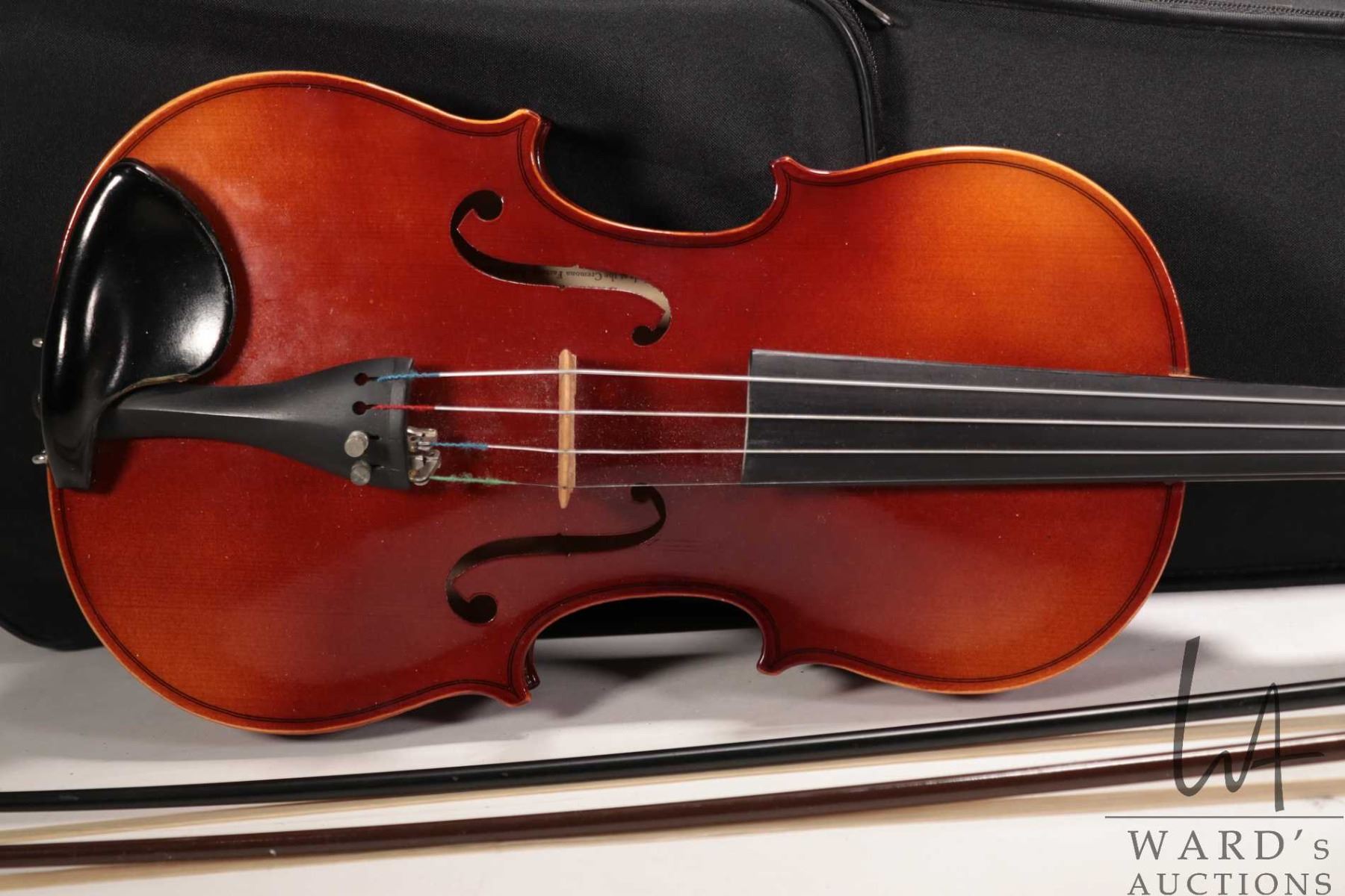 Tatra by Rosetti Stradivarius model 4/4 size, label "Made in the Cremona Factory Luby, Czechoslovakia" Includes black hard case with red velvet lining, rosin, spare bridge and two bows