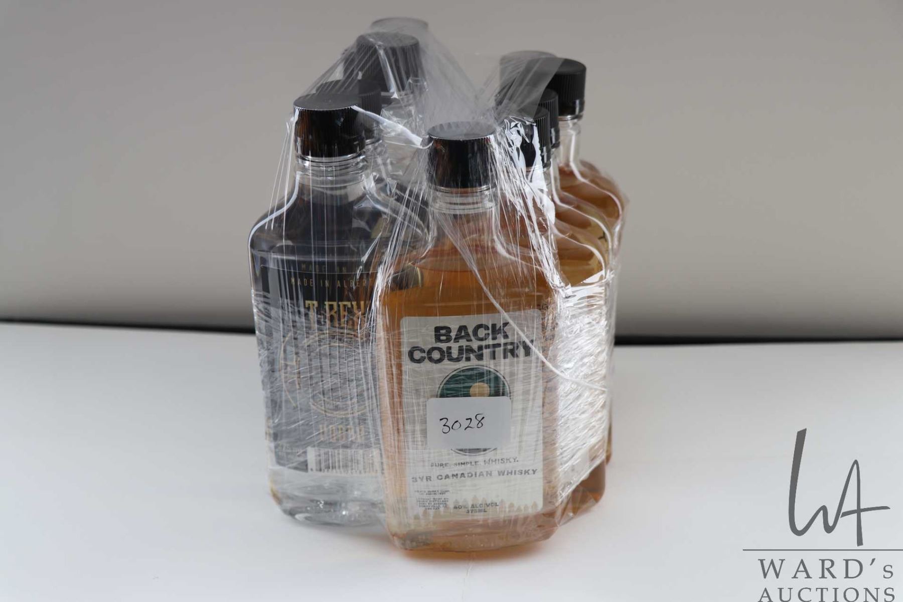 Ten 375ml bottles including 5 Back Country 3 year Canadian Whiskey / 40% ABV and 5 T Rex Vodka / 40% ABV Note: Alcohol cannot be insured by any courier in Canada. Local pick up is recommended. Canadian bidders only
