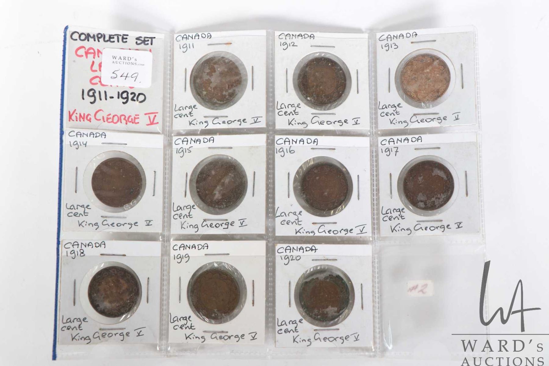 Ten Canadian large cents, all King George V 1911 through to 1920