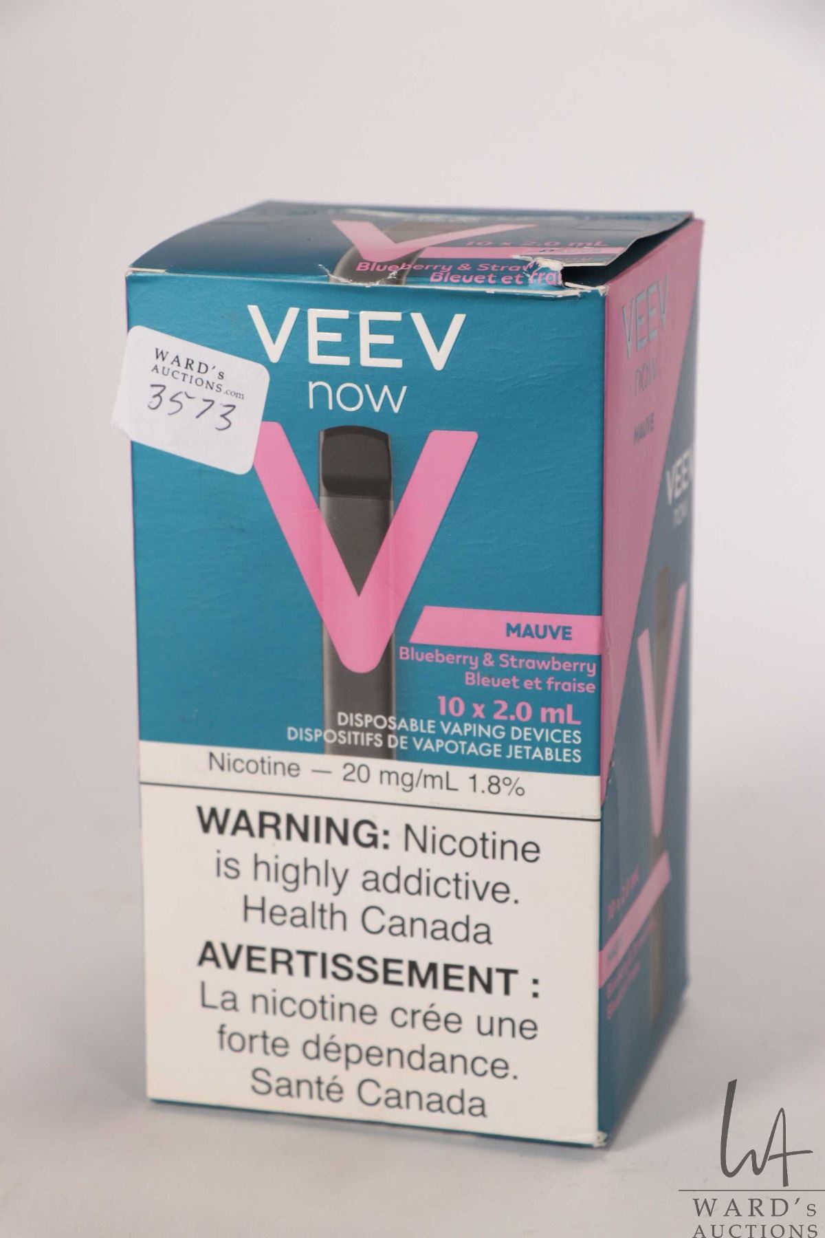 Ten X 2.0mg packaged of Veev Now Blueberry & Strawberry disposable vaping devices Note: Age appropriate Canadian buyers only