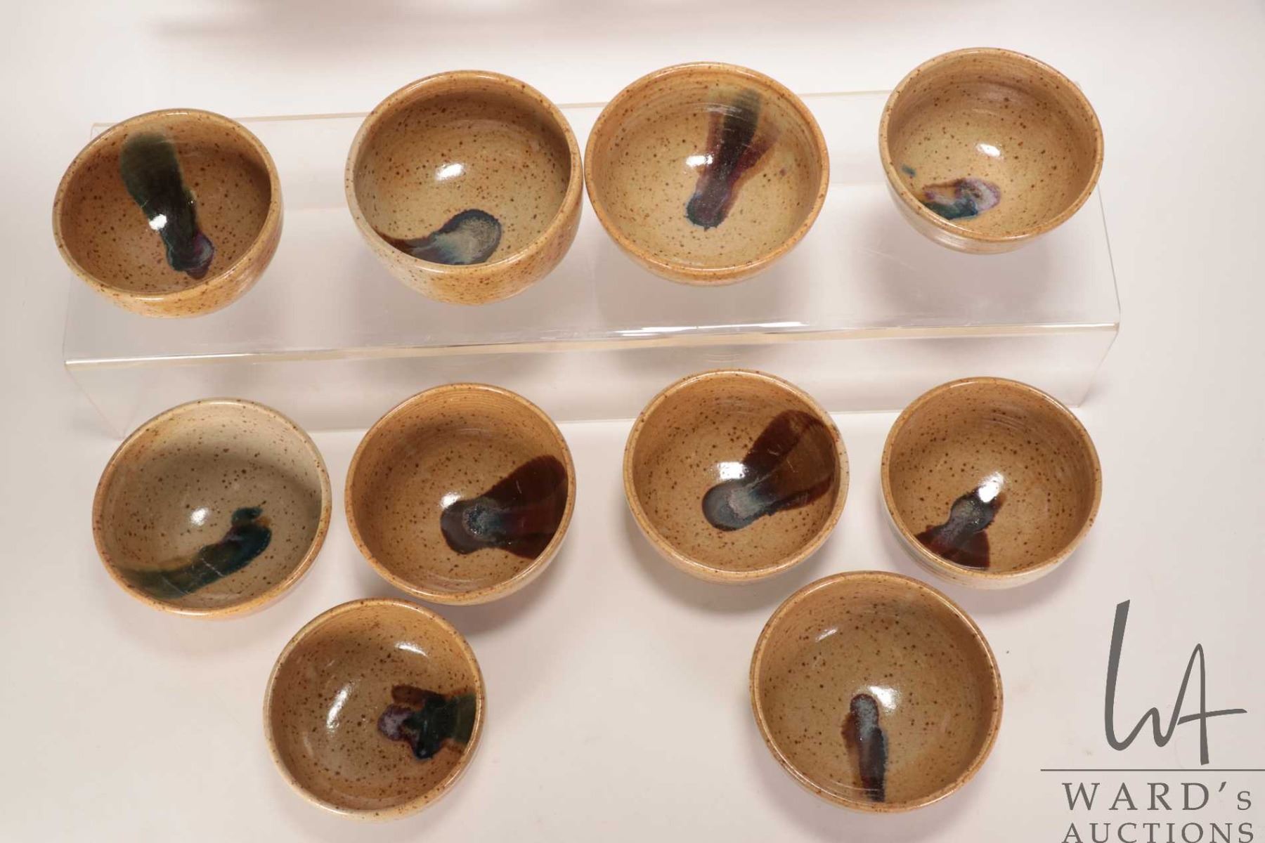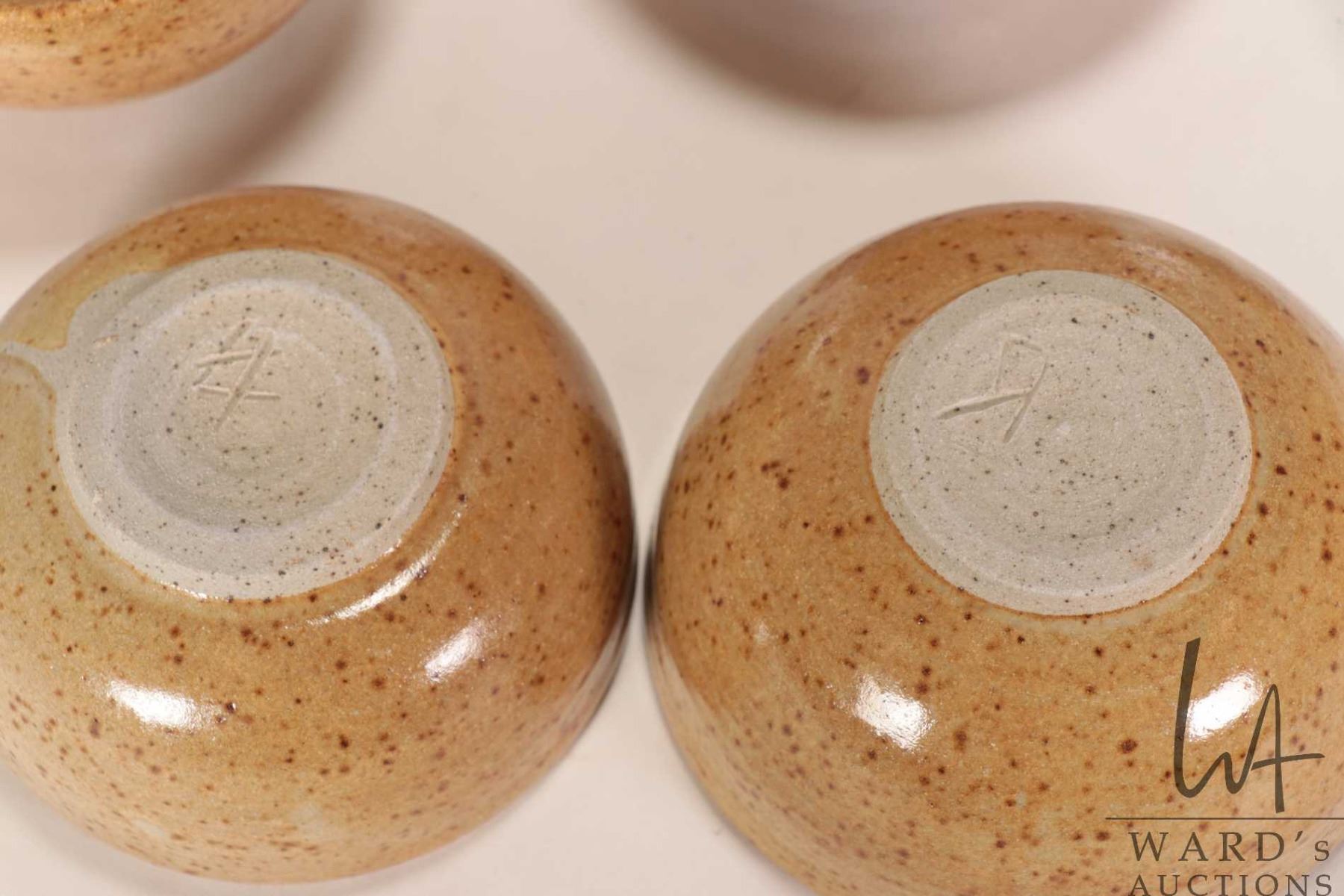 Ten artisan made pottery bowls believed to be by L. Kosteriva ( Creech' s Lakeland Pottery Guide) in