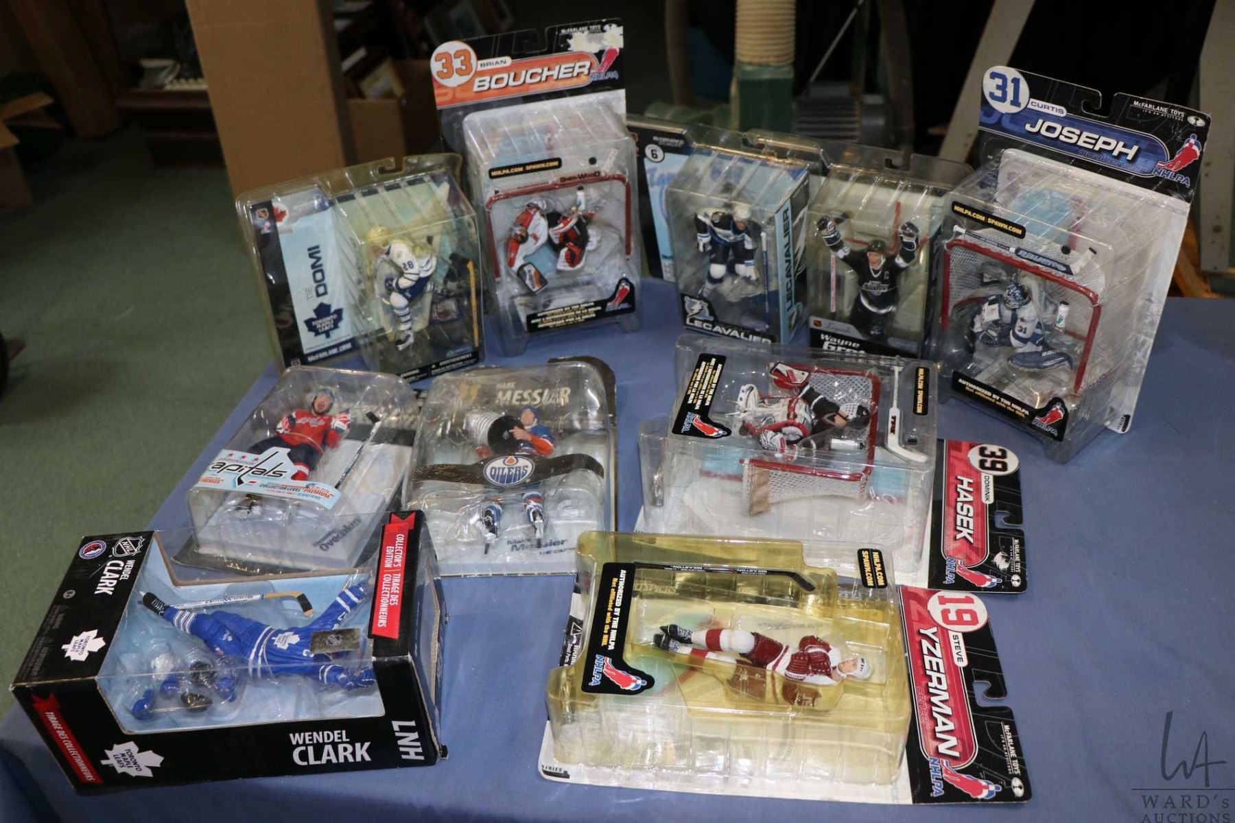 Ten factory sealed hockey action figures including Wayne Gretzky, Tie Domi, Curtis Joseph, Brian Boucher, Steve Yzeram etc.
