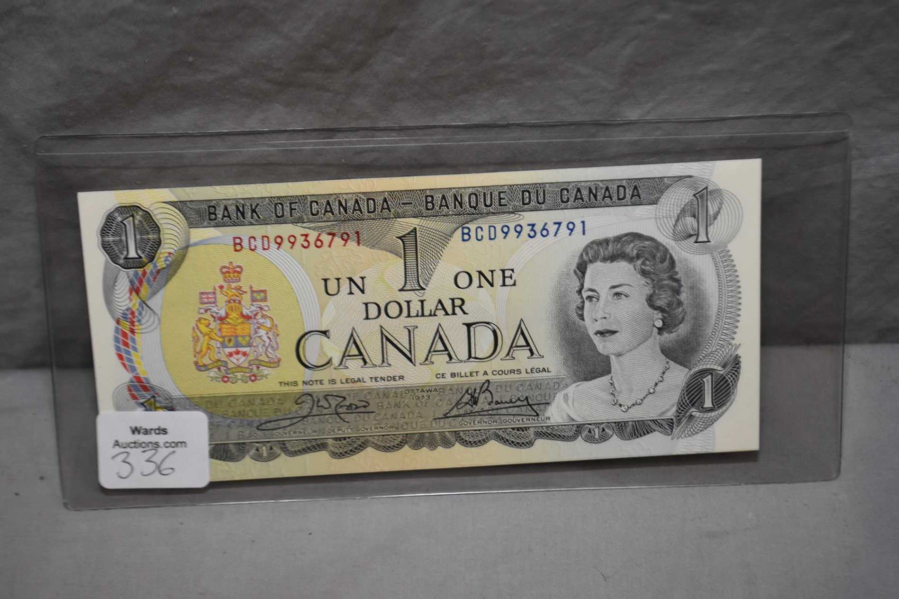 Ten non-circulated 1973 Canadian one dollar bills with sequential serial numbers