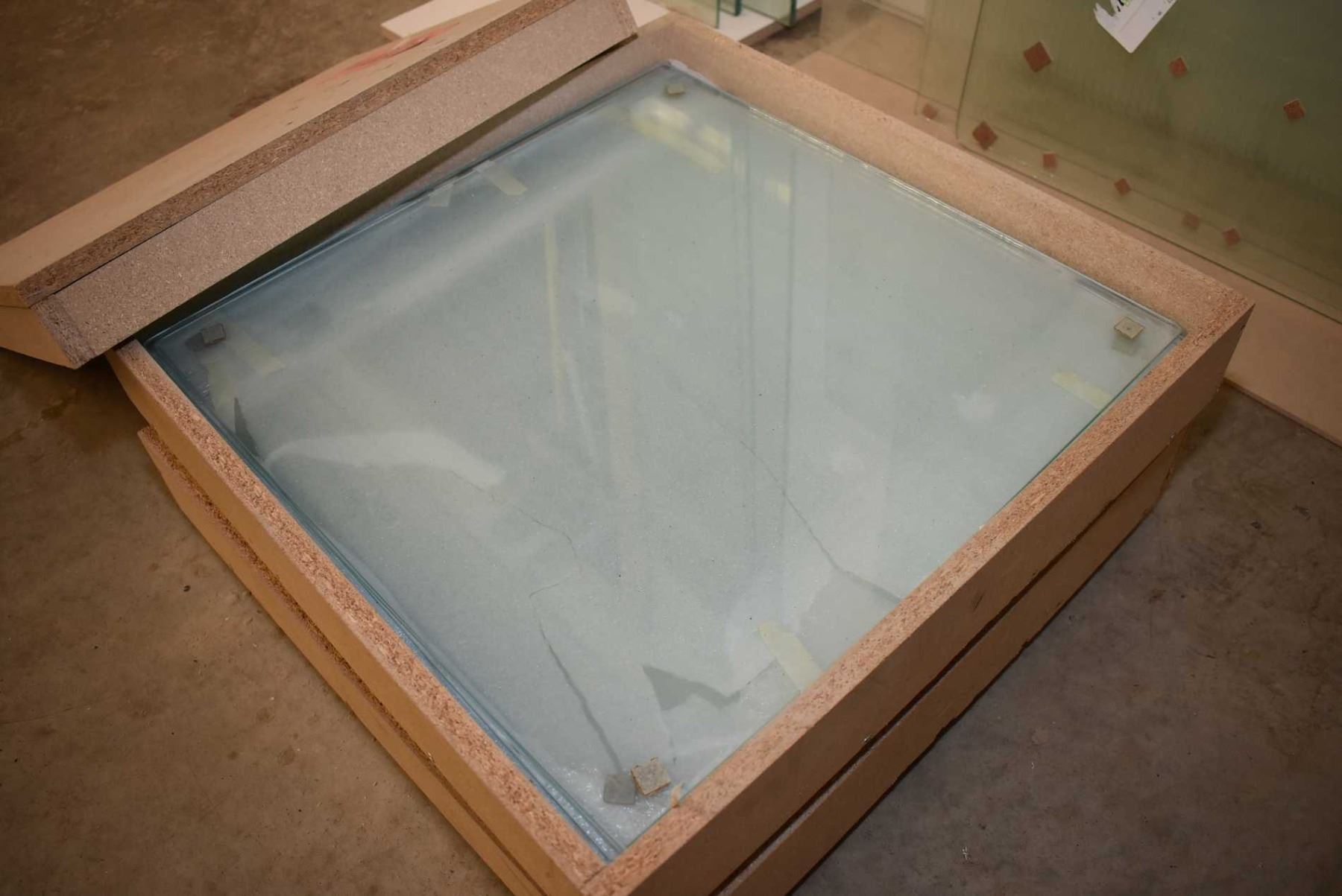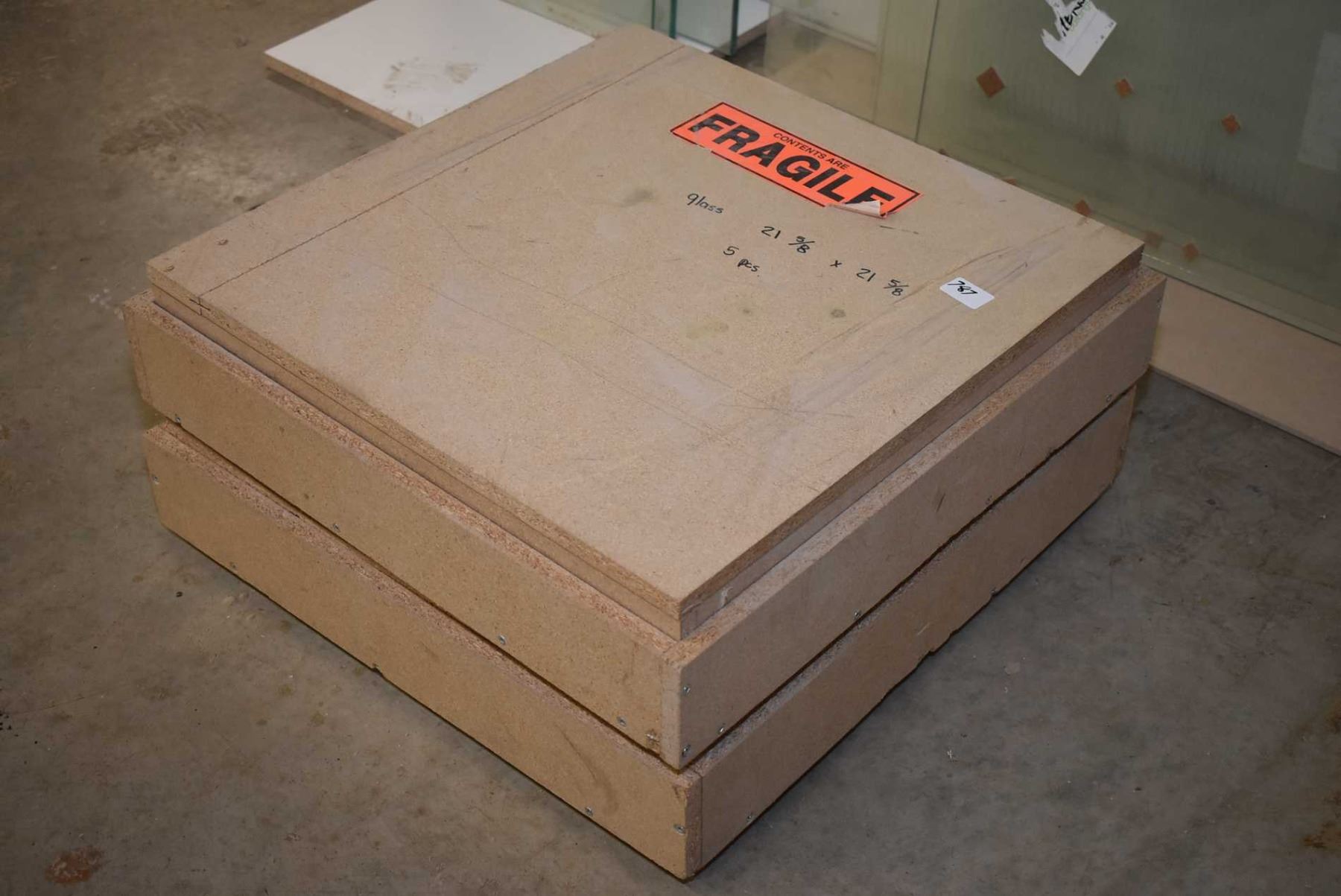 Ten pieces of tempered 6mm glass 21 5/8" X 21 5/8" -. (Update for March 27th. This item will be stored at the Ward's Auctions until it can be picked up. Go to www.wardsauctions.com for details)