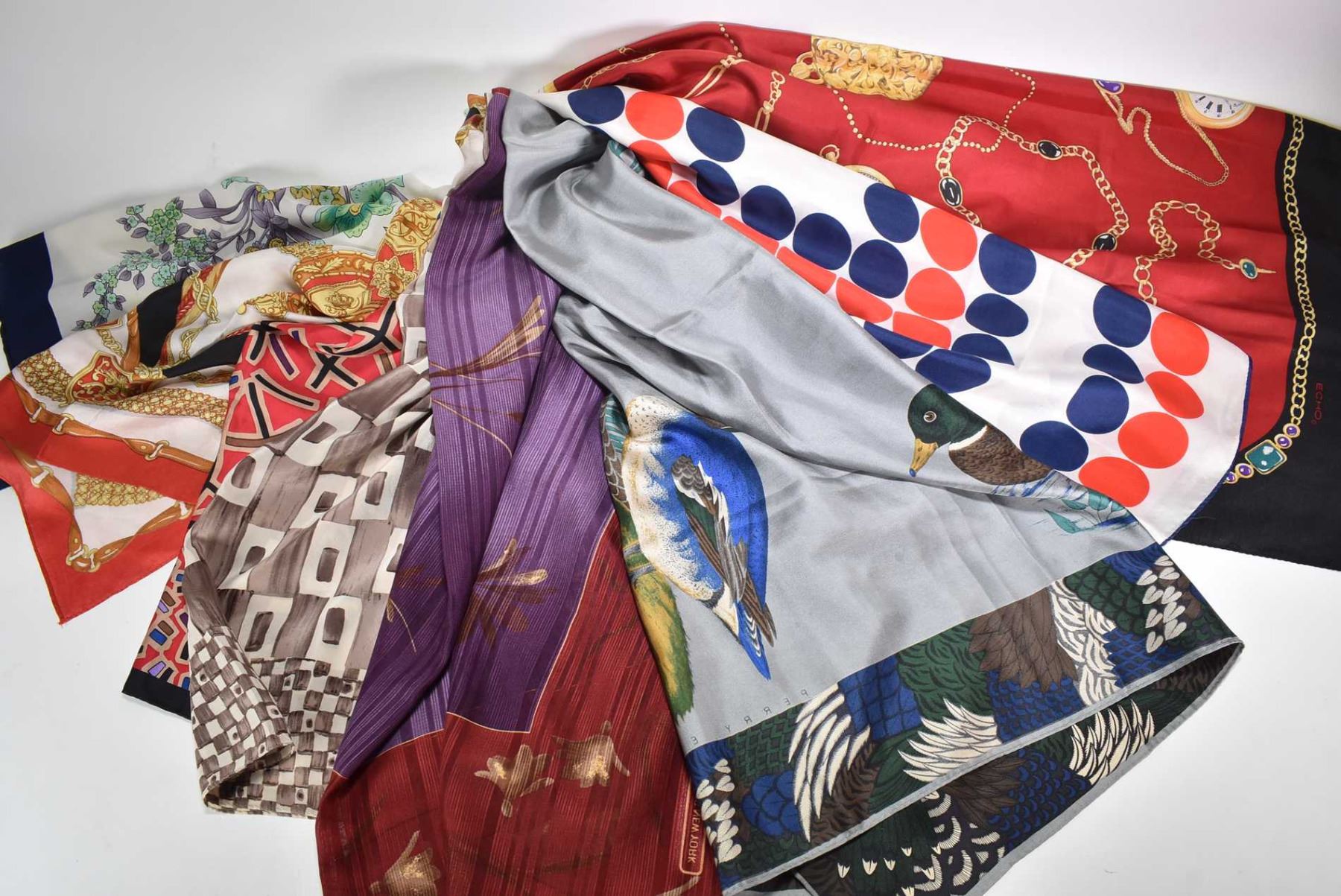 Ten silk and designer scarves including Echo, Jones of New York, Perry Ellis, Anne Klein etc.