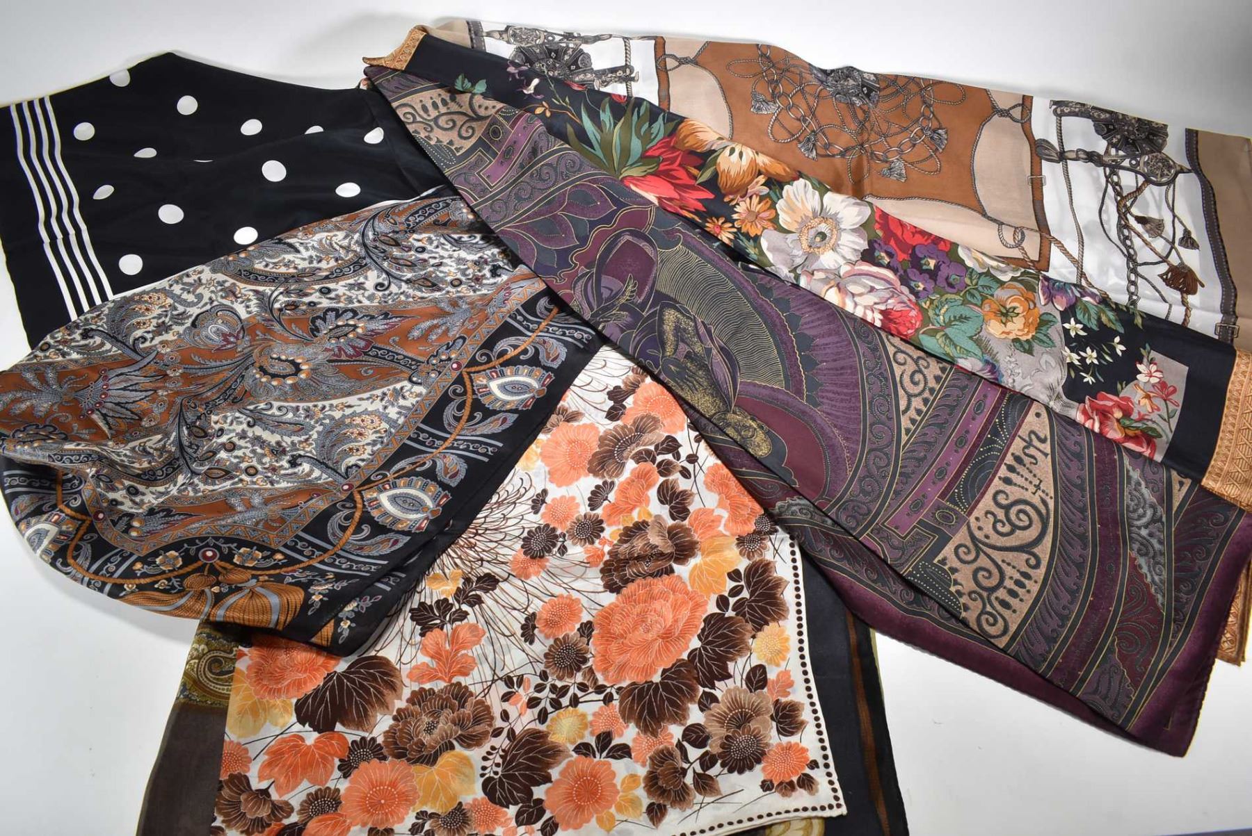 Ten silk, chiffon and designer scarves including Le Chateau, Naught. Echo, Club 7 etc.