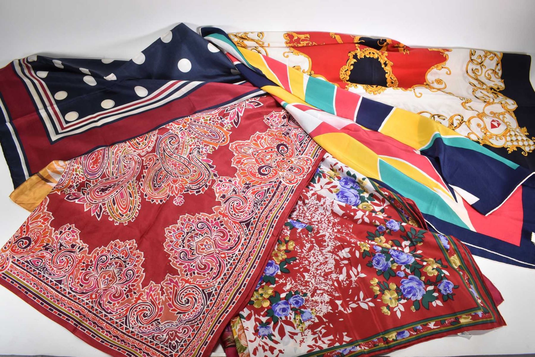 Ten silk, chiffon and designer scarves including Mr. Jax, Oscar de la Renta, Bill Blass etc.