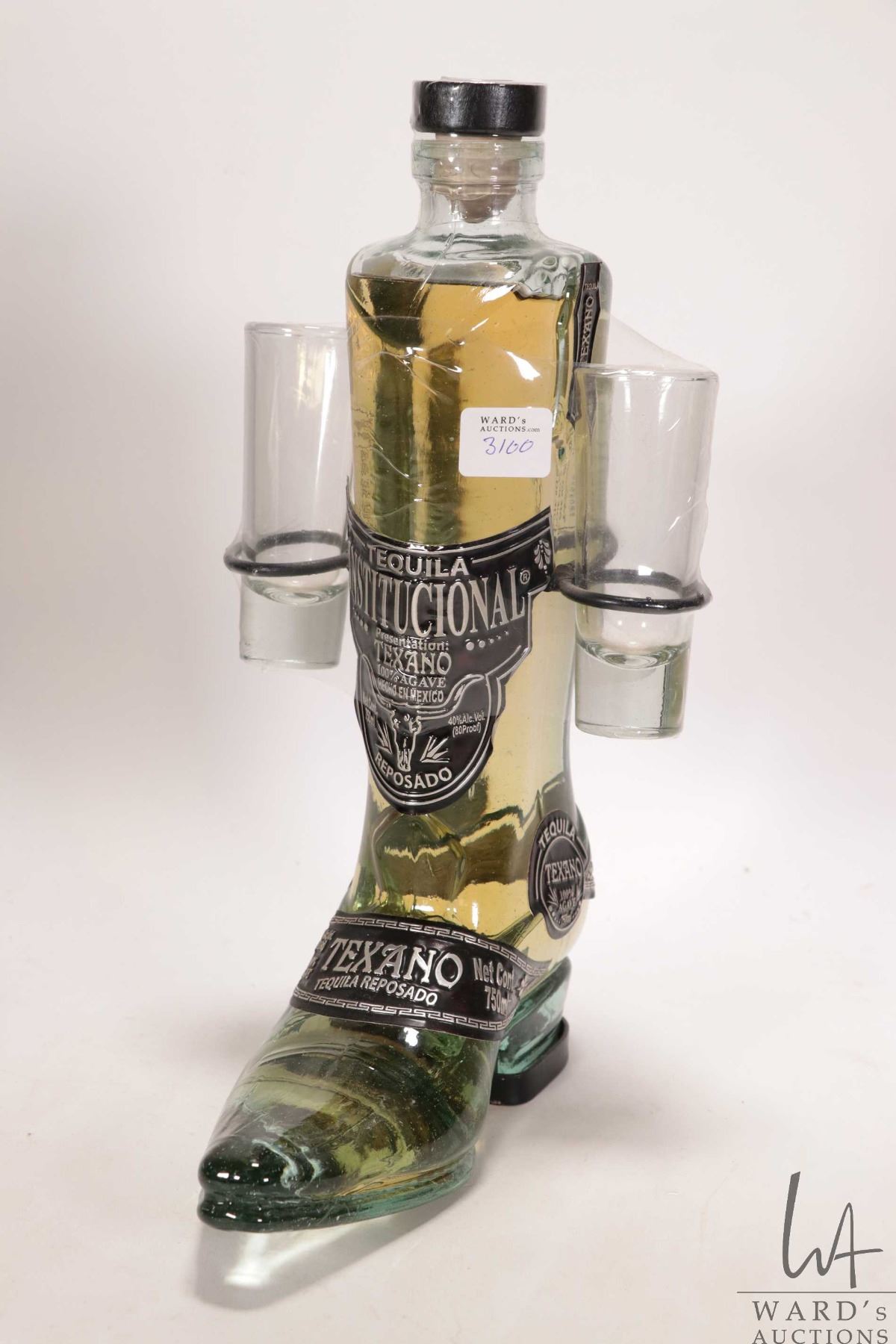 Tequila Institucional/ 100% Agave/ 750ml/ 40% ABV/ In glass cowboy boot/ limited edition/ includes two shot glasses Note: Alcohol cannot be insured by any courier in Canada. Local pick up is recommended. Canadian bidders only