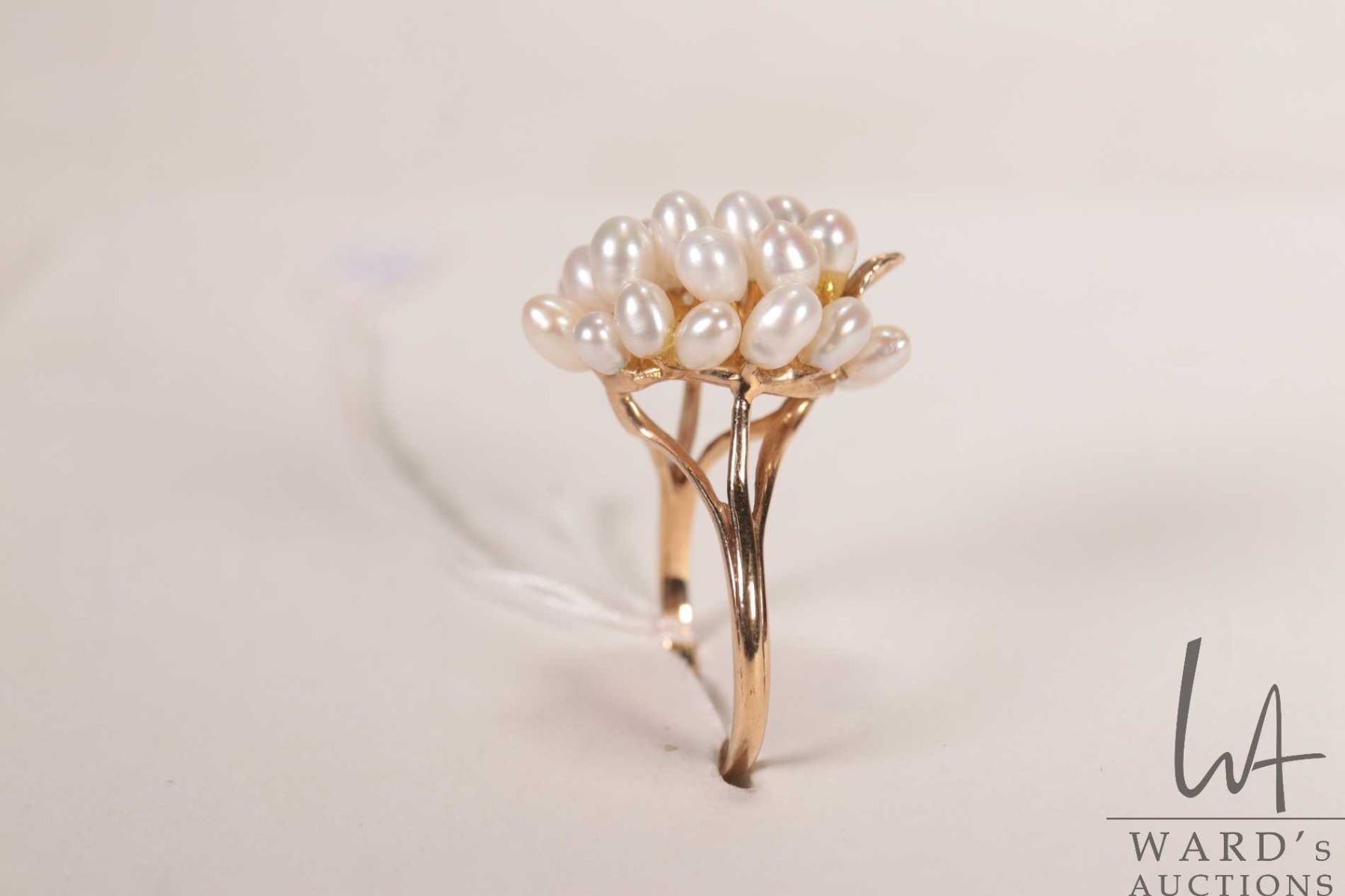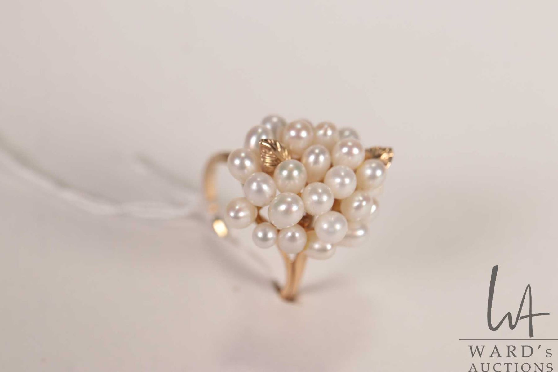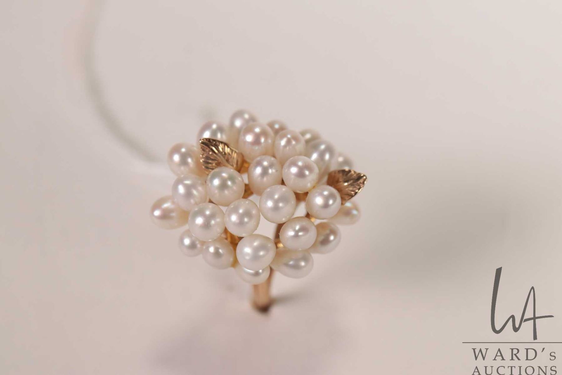 Tested 10kt yellow gold ring set with genuine pearls, size 9