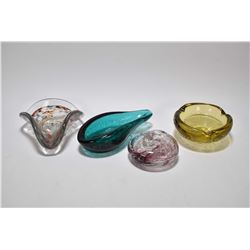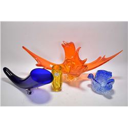 Four pieces of vintage art glass including a cobalt cornucopia vase etc.