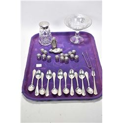 Selection of sterling silver including set of eleven matching sterling teaspoons, small fork, sugar