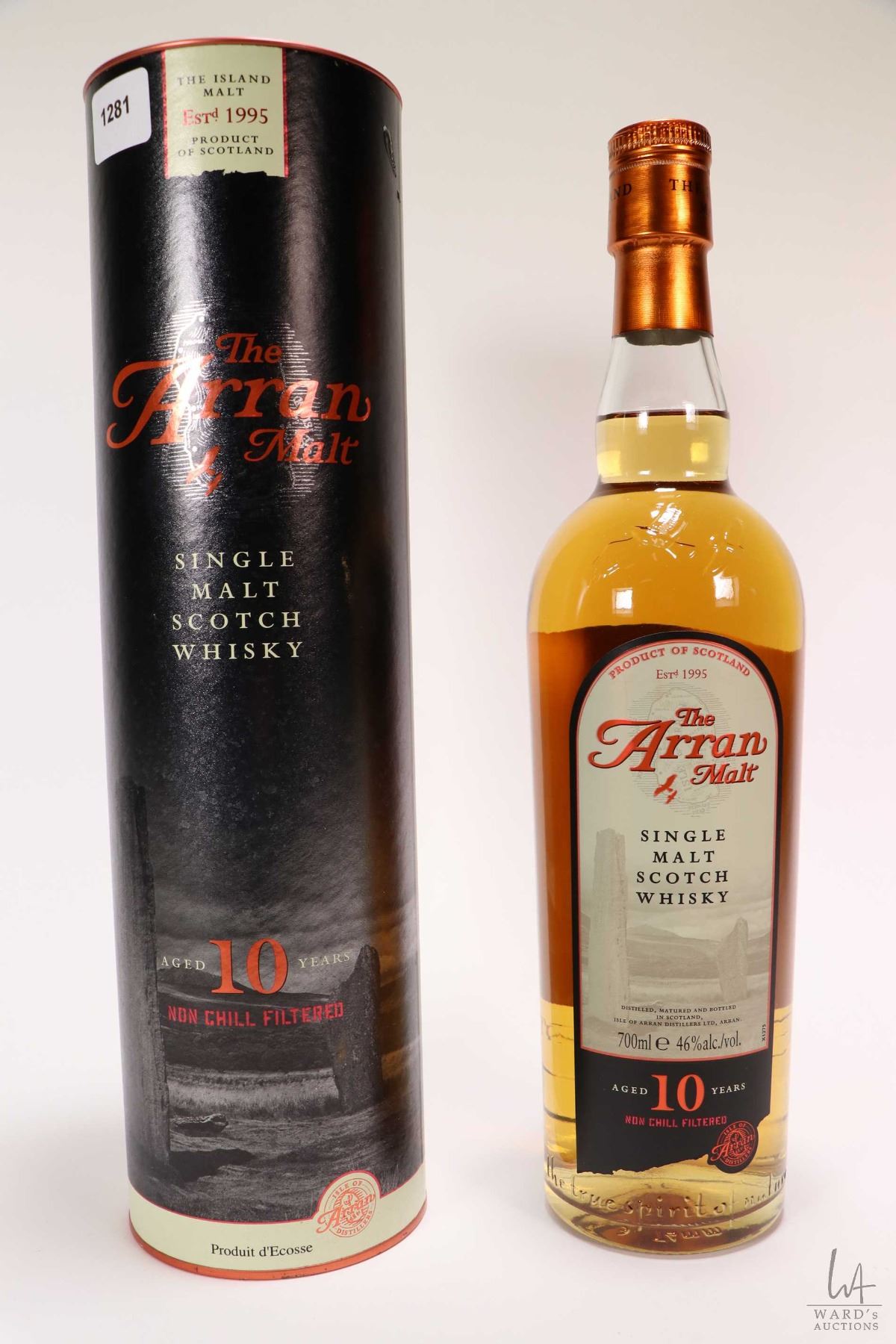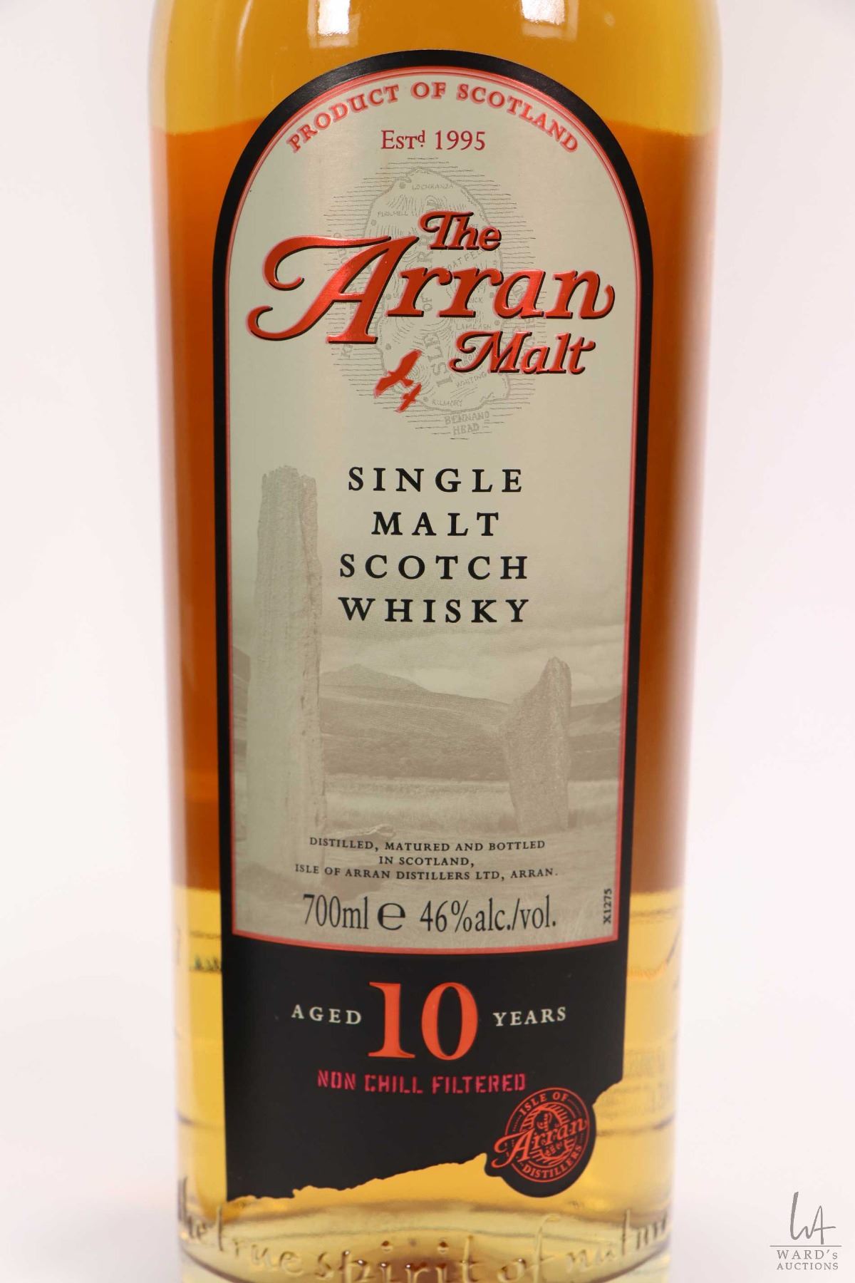 The Arran 10 yr. single malt Scotch whisky in 700ml bottle with cardboard sleeve. Note: No Shipping. Local Pickup Only