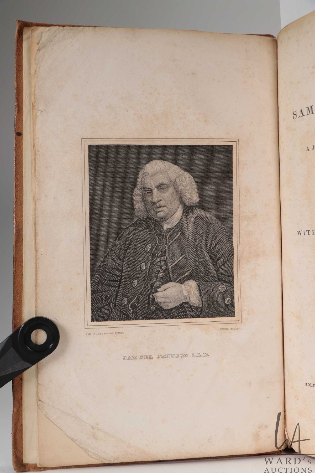 The Life of Samuel Johnson, L L.D- including a journal of a tour to the Hebrides. By James Boswell Esq. In two volumes. Published by George Dearborn & Co. New York. 1837. Two leather and hardboard volumes with embossed gold lettering on spines