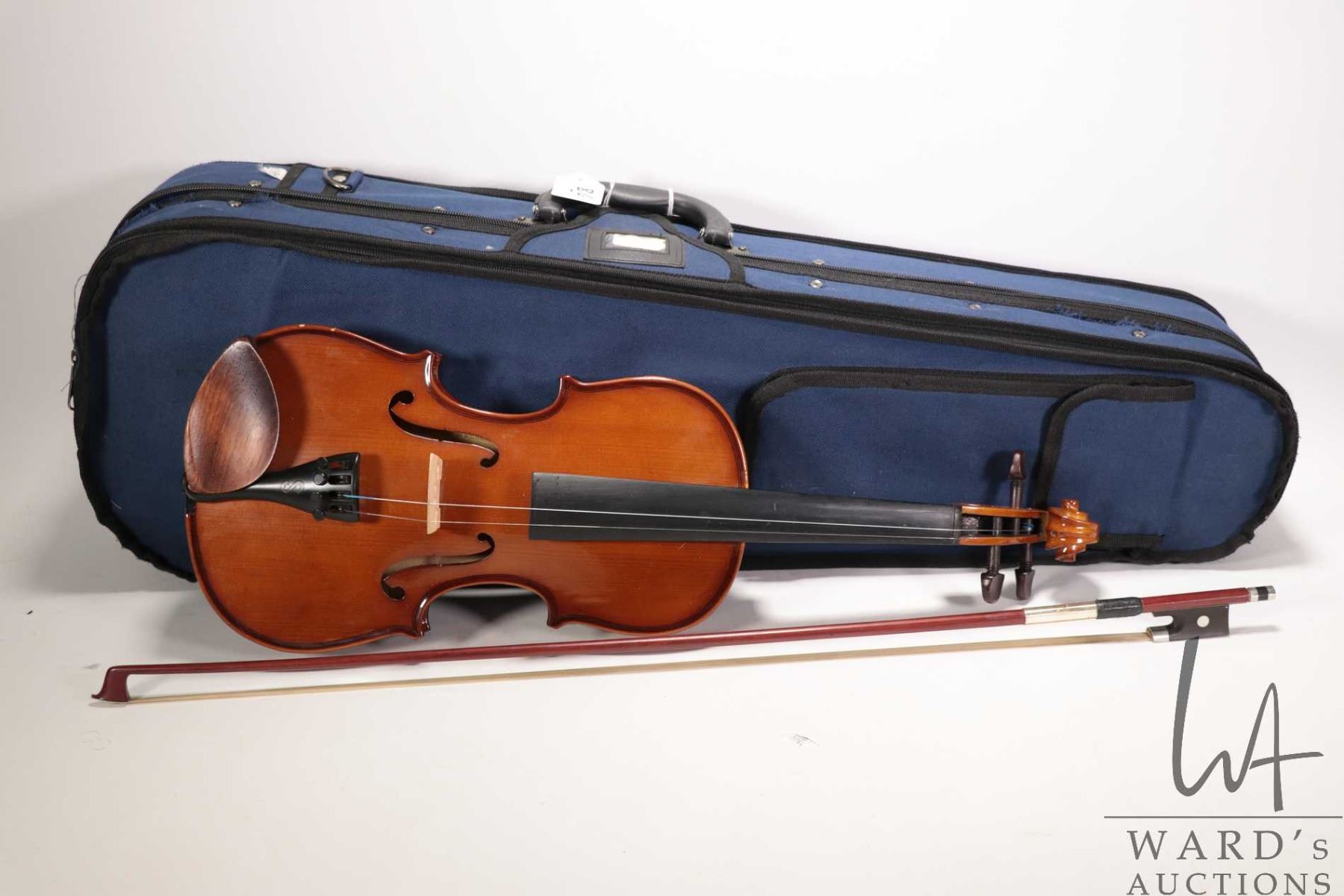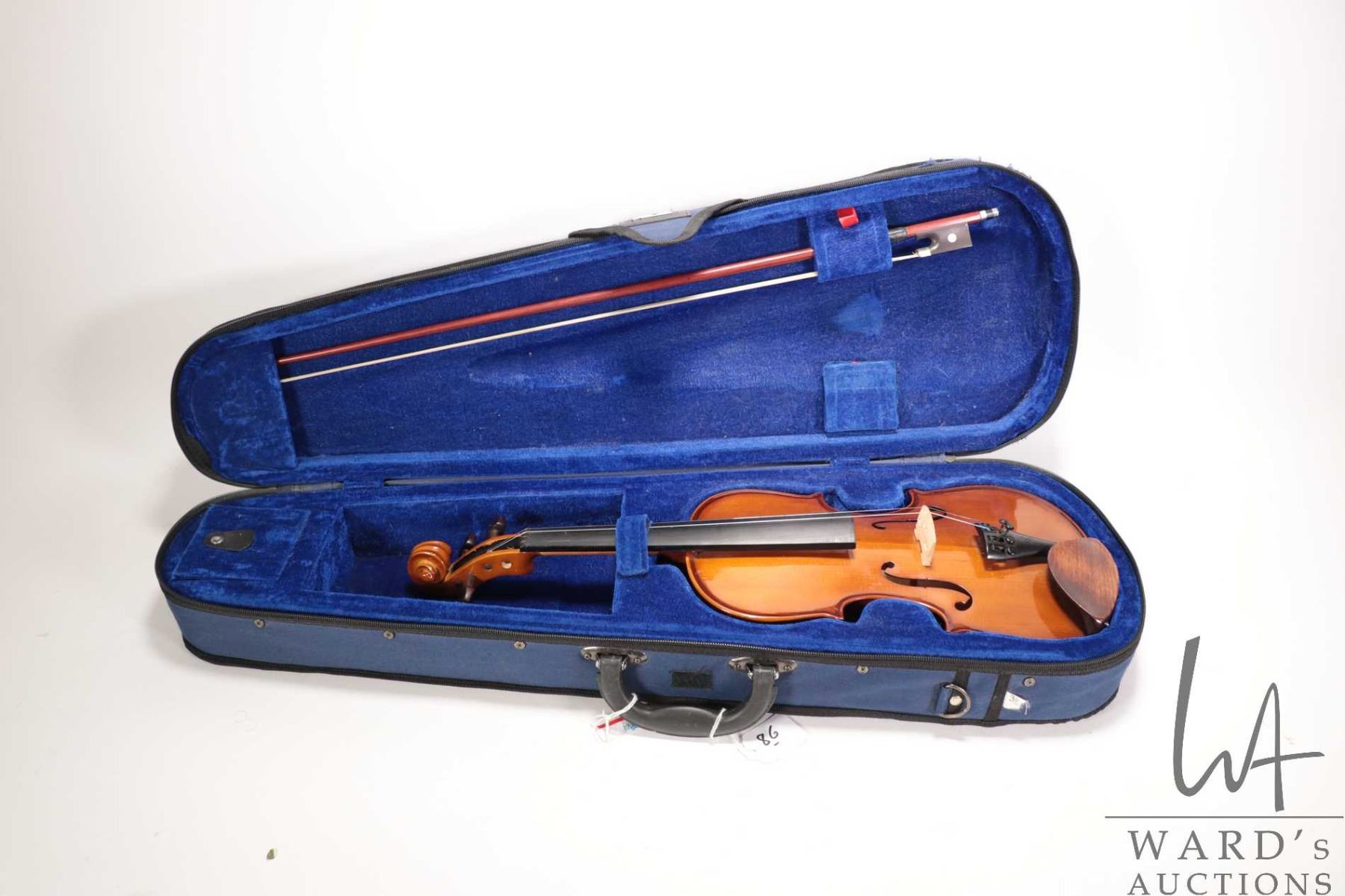 The Stentor Student One 4/4 violin with blue velvet lined hard case, includes case, bow and rosin. N